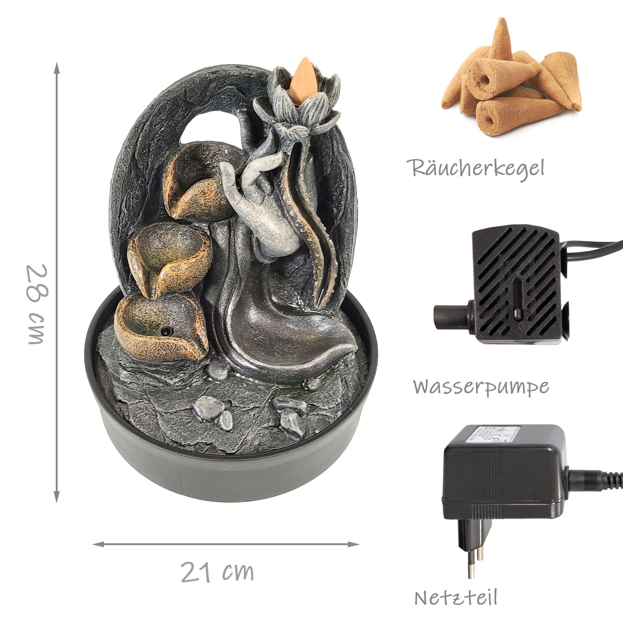 2 in 1 Tischbrunnen Lotus, Zimmerbrunnen und Räucherbrunnen vereint