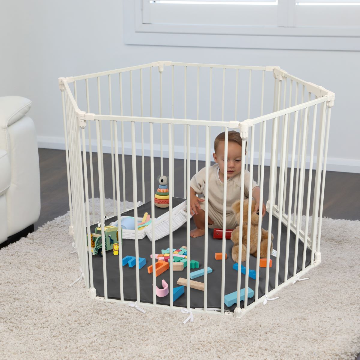 Produktinformationen "3in1 Laufgitter, Türschutzgitter, Kaminschutzgitter, Laufstall weiß"