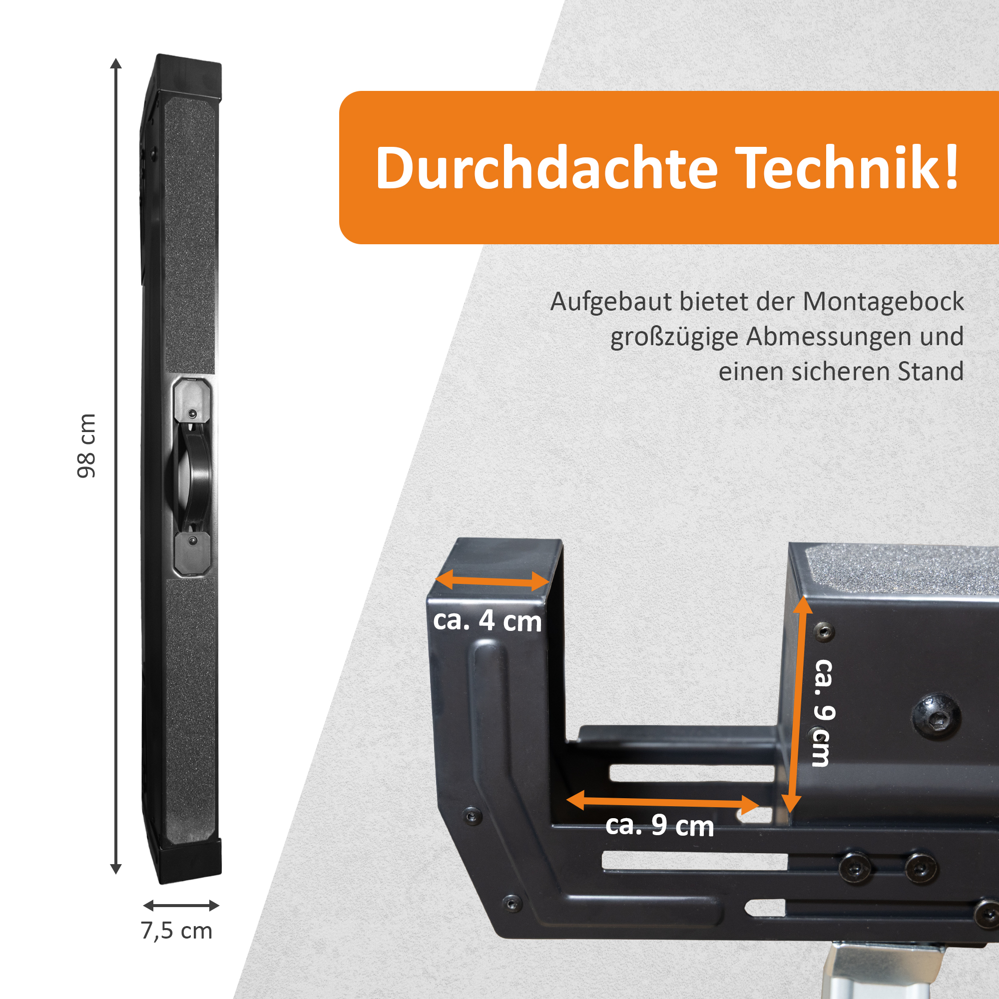 Für Heimwerker und Profis ein Muss: Ein Arbeitsbock gehört zur Grundausstattung – zwei machen den Unterschied. Mit unserem 2er-Set höhenverstellbarer Arbeitsböcke holst Du Dir robuste Profiqualität zu einem attraktiven Preis. Jeder Bock trägt bis zu 590 kg und bietet damit enorme Stabilität für unterschiedlichste Einsätze. Dank der 8-fachen Höhenverstellung passen Sie ihre Arbeitshöhe flexibel an Deine Bedürfnisse an – ergonomisch und effizient. Durch das kompakte Klappdesign und das geringe Gewicht sind die Böcke mobil und schnell einsatzbereit – ideal für Werkstatt, Garage oder Baustelle. Clevere Extras wie die integrierten Halterungen an den Beinen erleichtern das Zuschneiden von Holzplatten und ermöglichen zusammen mit Kanthölzern und einer Platte den Bau einer individuellen, höhenverstellbaren Werkbank. Gefertigt aus hochwertigen Materialien und solide verarbeitet, sind diese Montageböcke langlebige Helfer, auf Du Dich Jahre lang zuverlässig verlassen kannst.