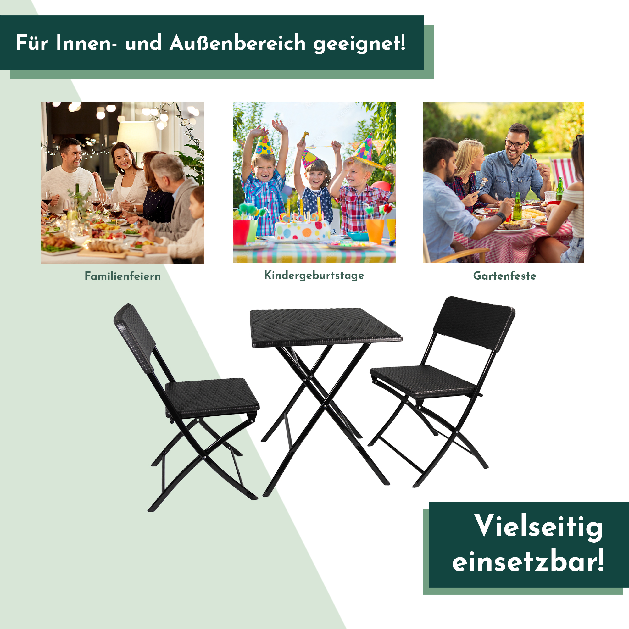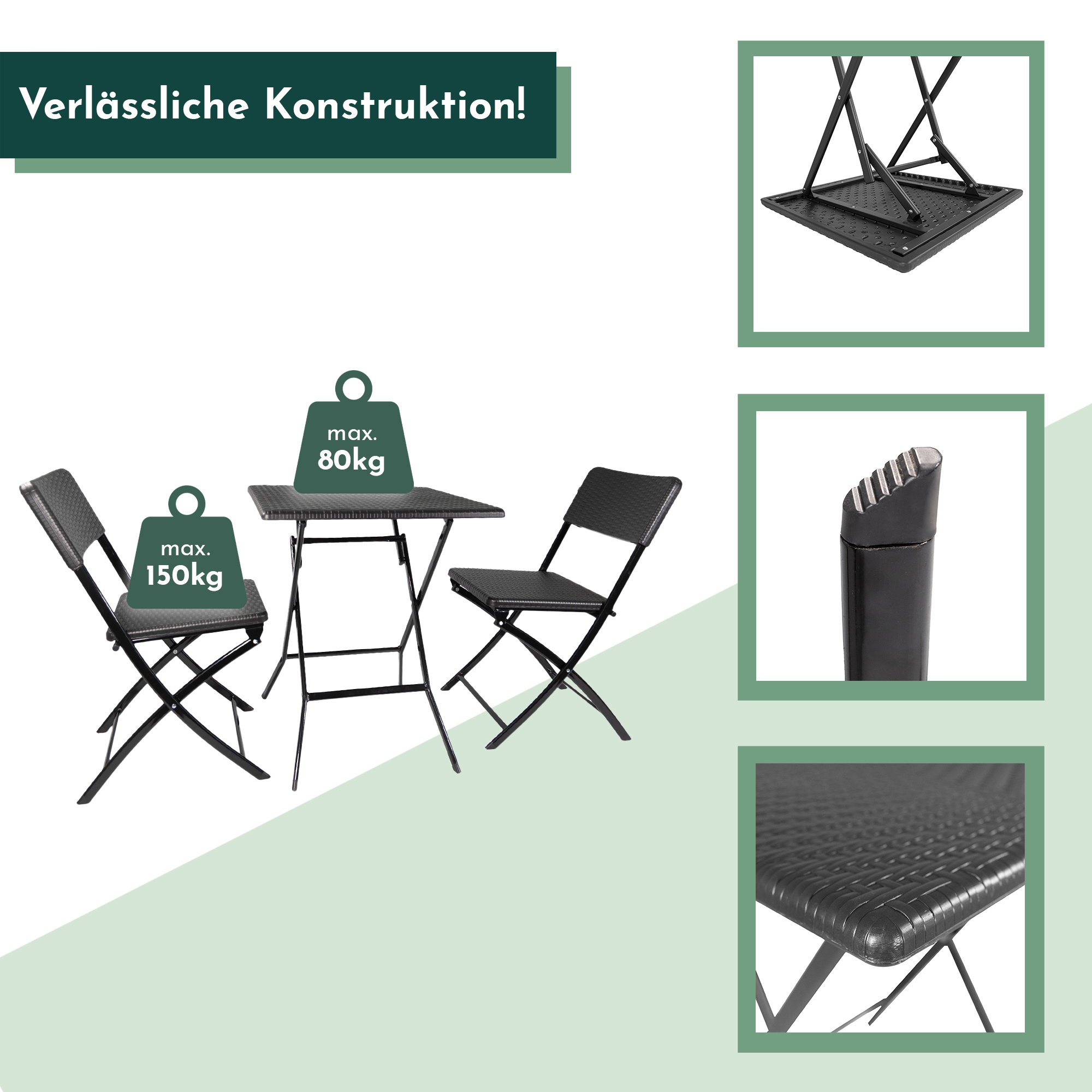 Balkon-Set, Rattan-Optik, 1 Tisch + 2 Stühle klappbar Balkongarnitur