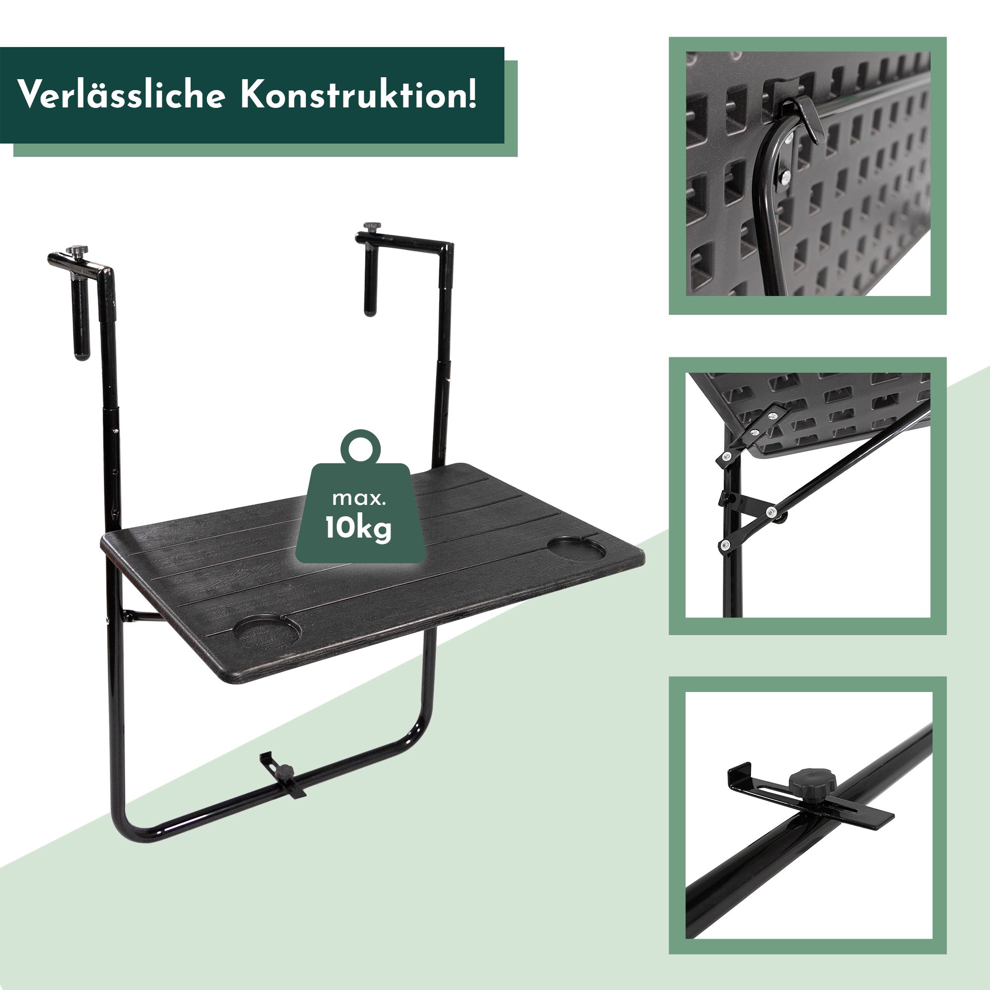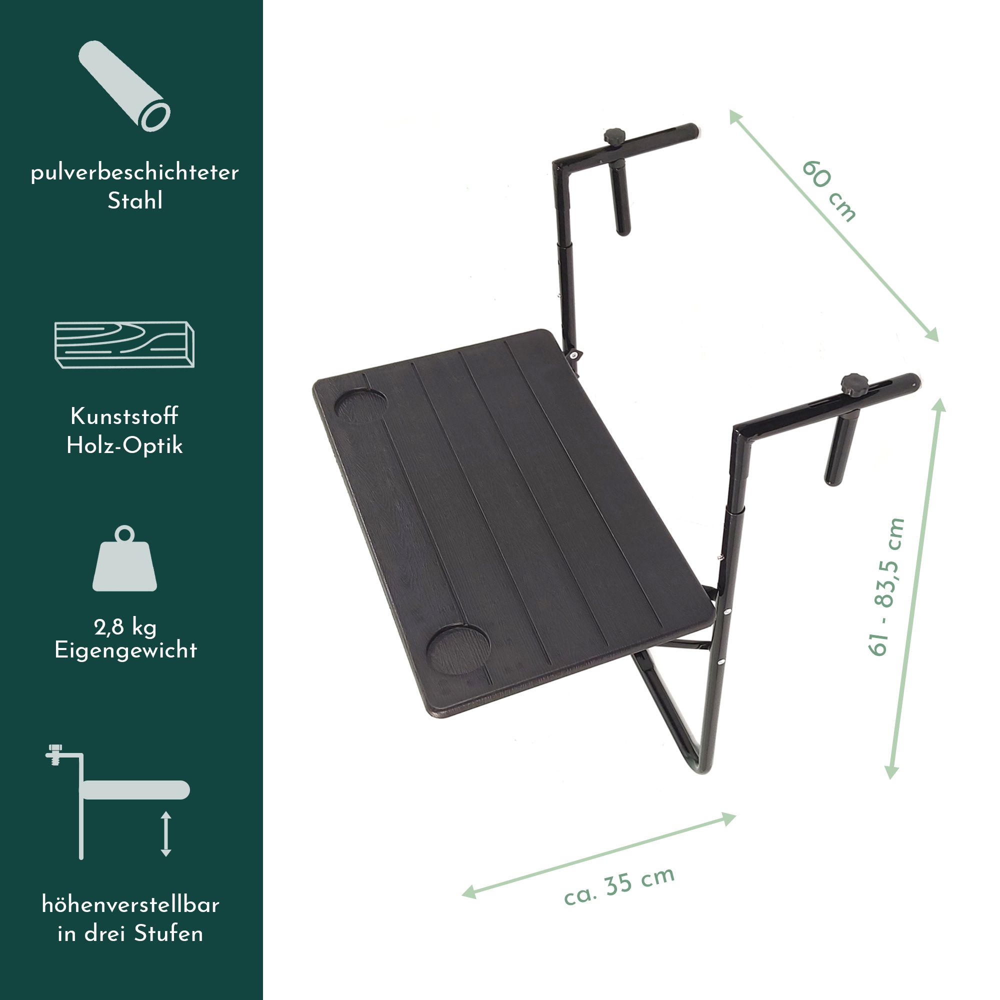 Produktinformationen "Balkonhängetisch klappbar, Balkontisch höhenverstellbar, Hängetisch 60 x 35 cm"