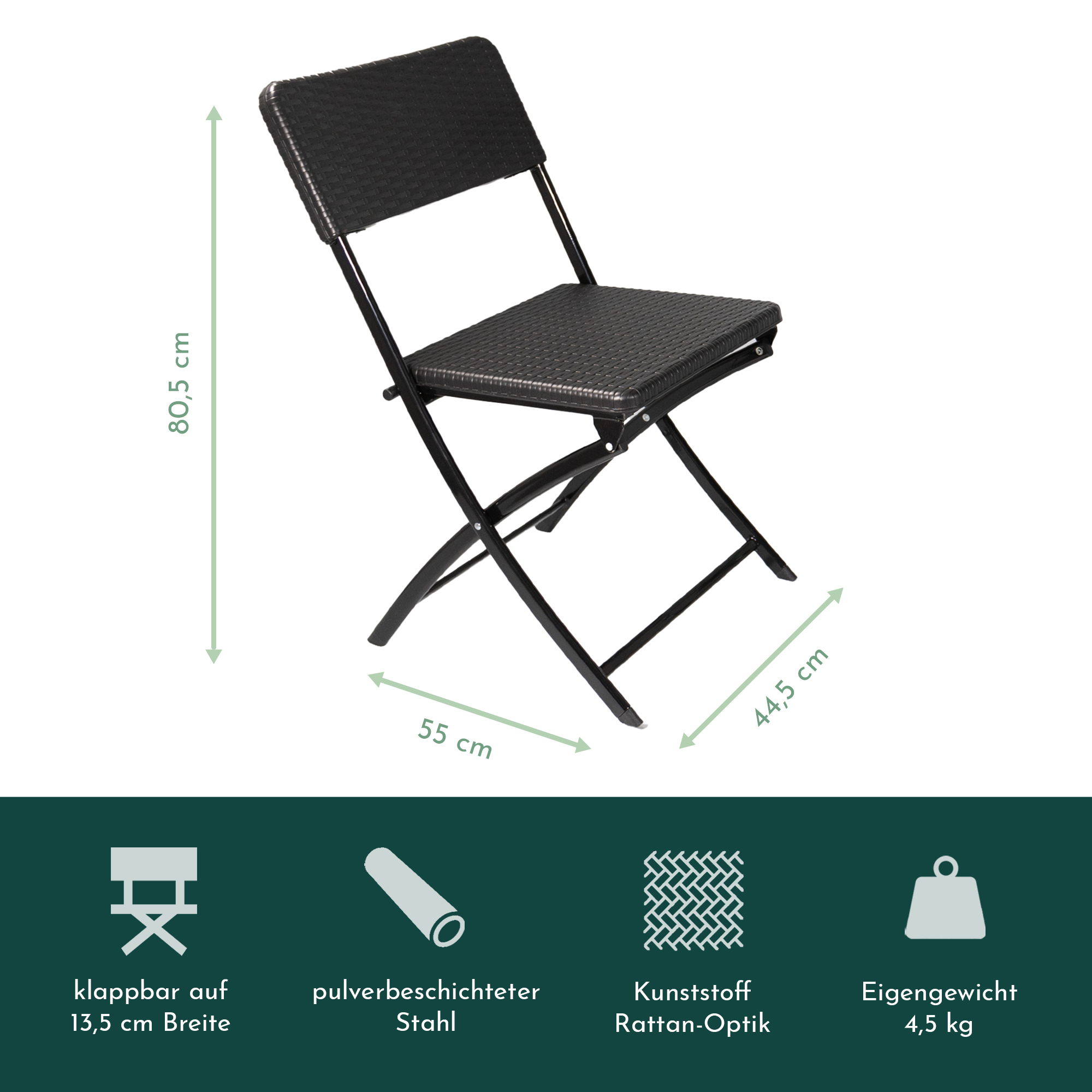 - Material Sitzfläche: Kunststoff, Rattan-Optik, schwarz