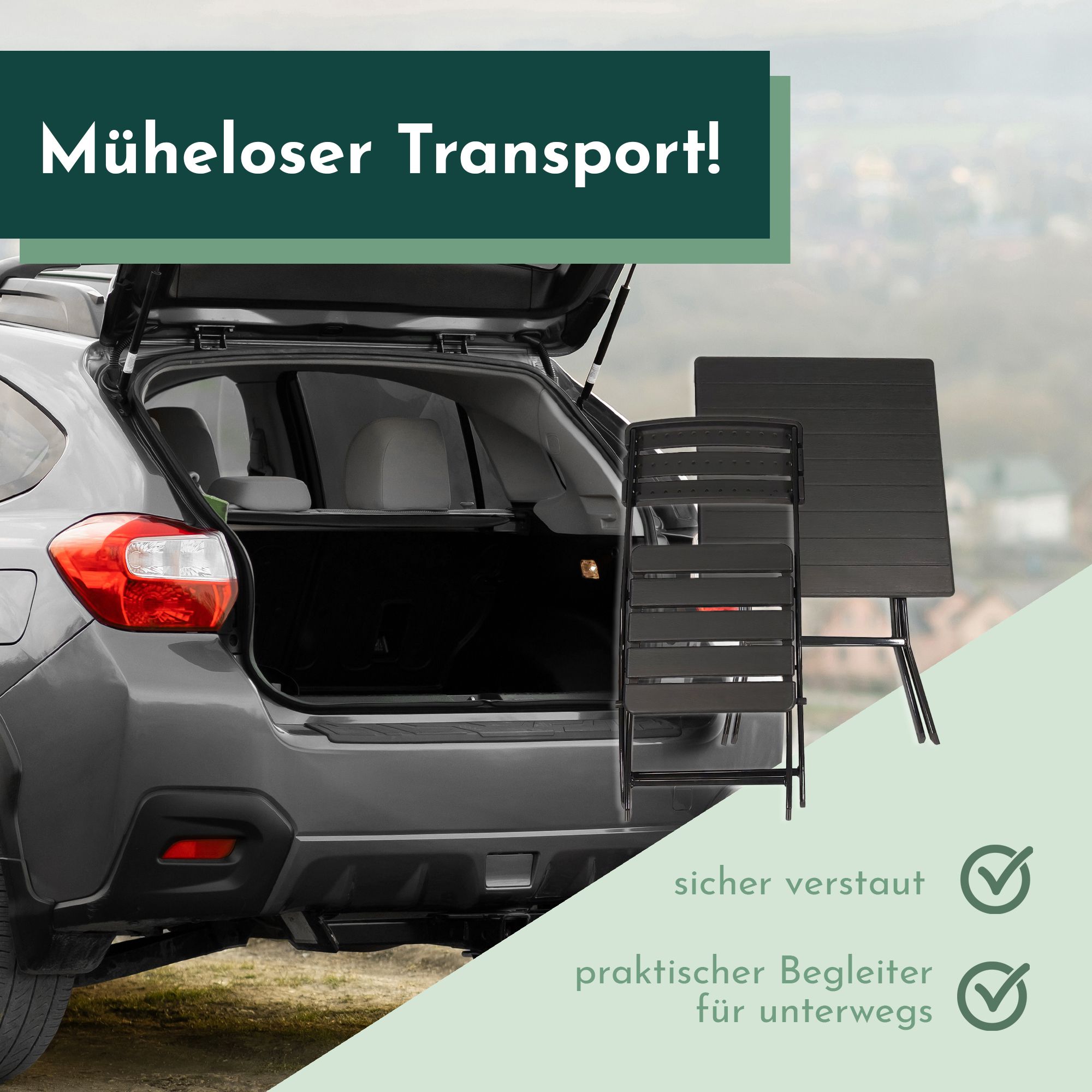 - KLAPPBAR UND TRANSPORTABEL: Das Klappdesign des Balkon Sets ermöglicht eine unkomplizierte Verstauung und mühelosen Transport. Genieße maximale Flexibilität mit unserem Balkonset – einfach überall dorthin mitnehmen und aufbauen, wo Du die Essgruppe benötigst