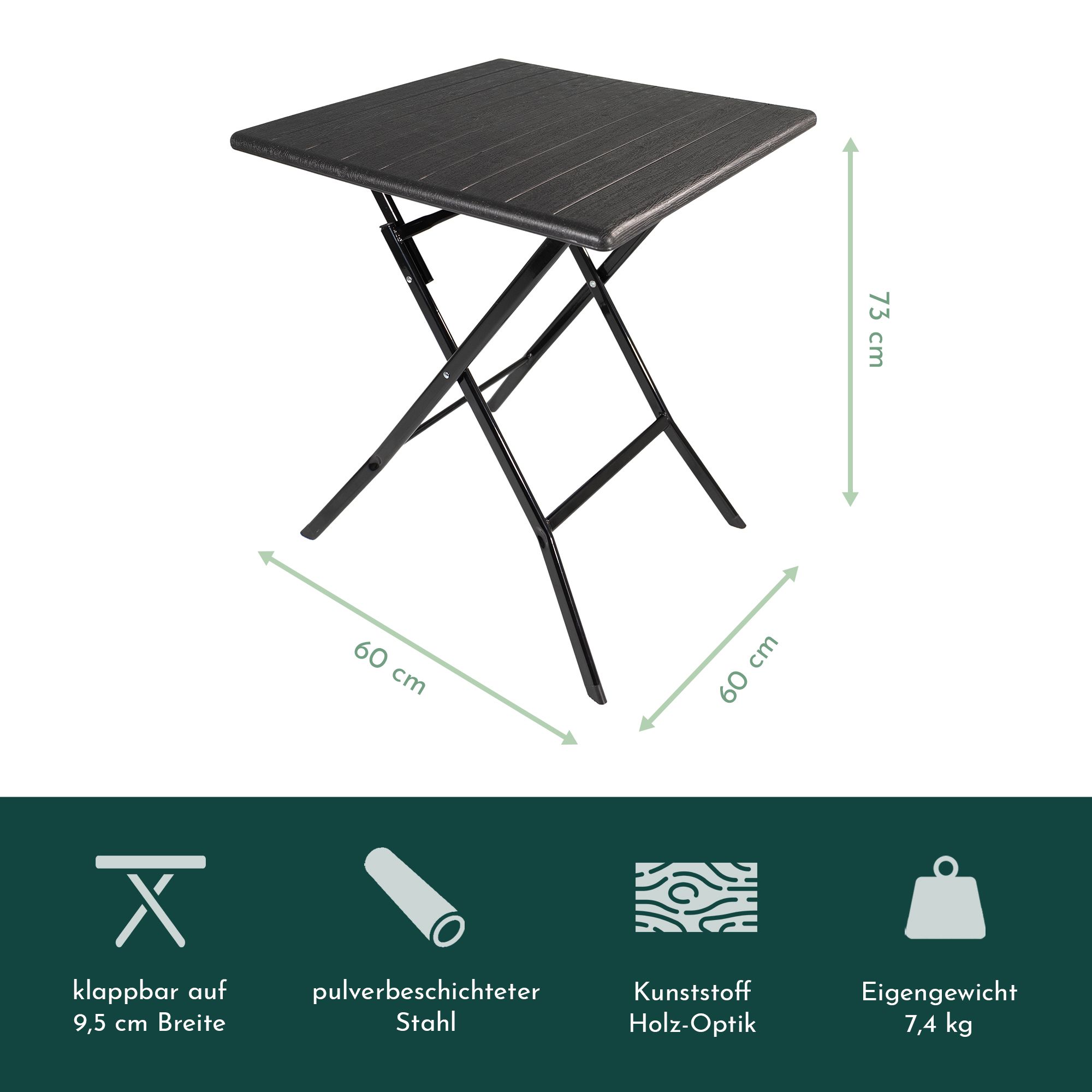 - Größe Tischplatte: 60 x 60 cm