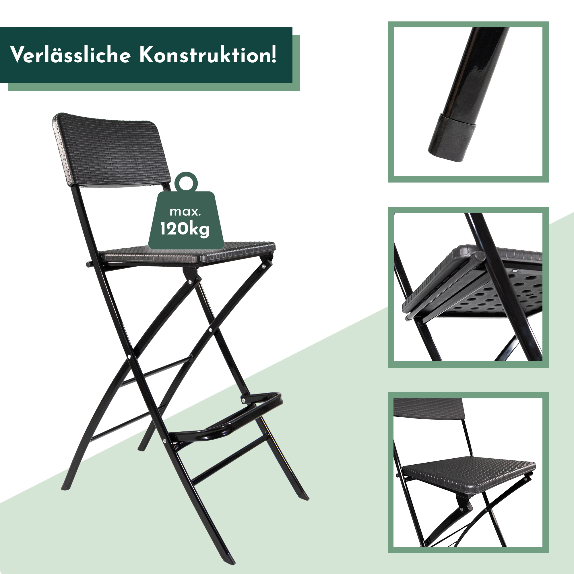 - VIELSEITIG NUTZBAR: Unser Barhocker 2er Set ist klappbar und mobil in jeder Location einsetzbar. Egal ob Grillfeste, Familienfeiern oder Entspannung im Freien. Die Barstühle passen auch perfekt in Deine Küche und schaffen eine einladende Atmosphäre