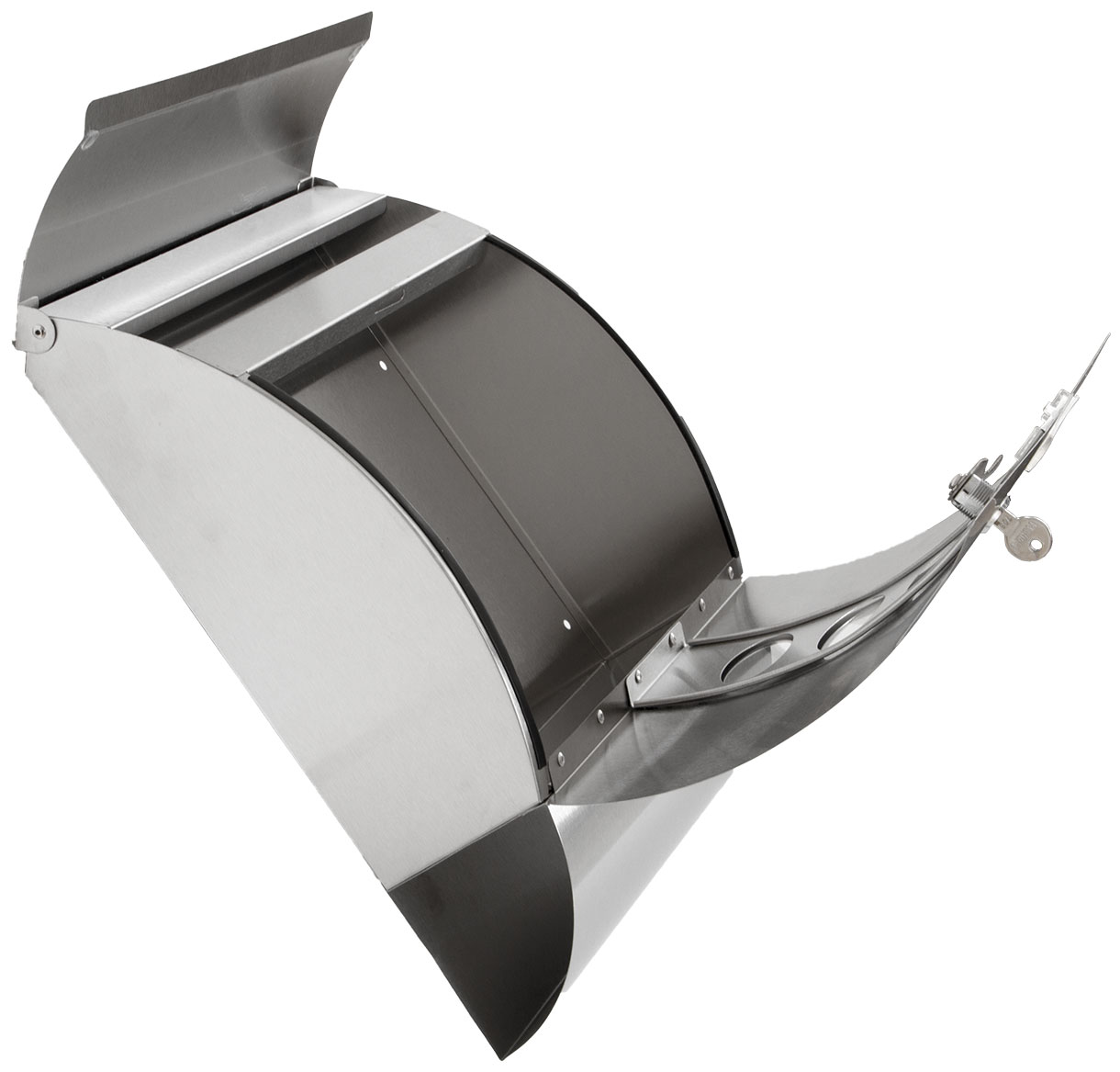 Der halbrunde Briefkasten mit Zeitungsrolle aus Edelstahl hat eine transparente Lackierung und verhindert dadurch Fingerabdrücke und Rückstände durch Regentropfen. Gefertigt ist er aus 0,6mm starkem Edelstahl mit 3 ovalen Sichtfenstern.