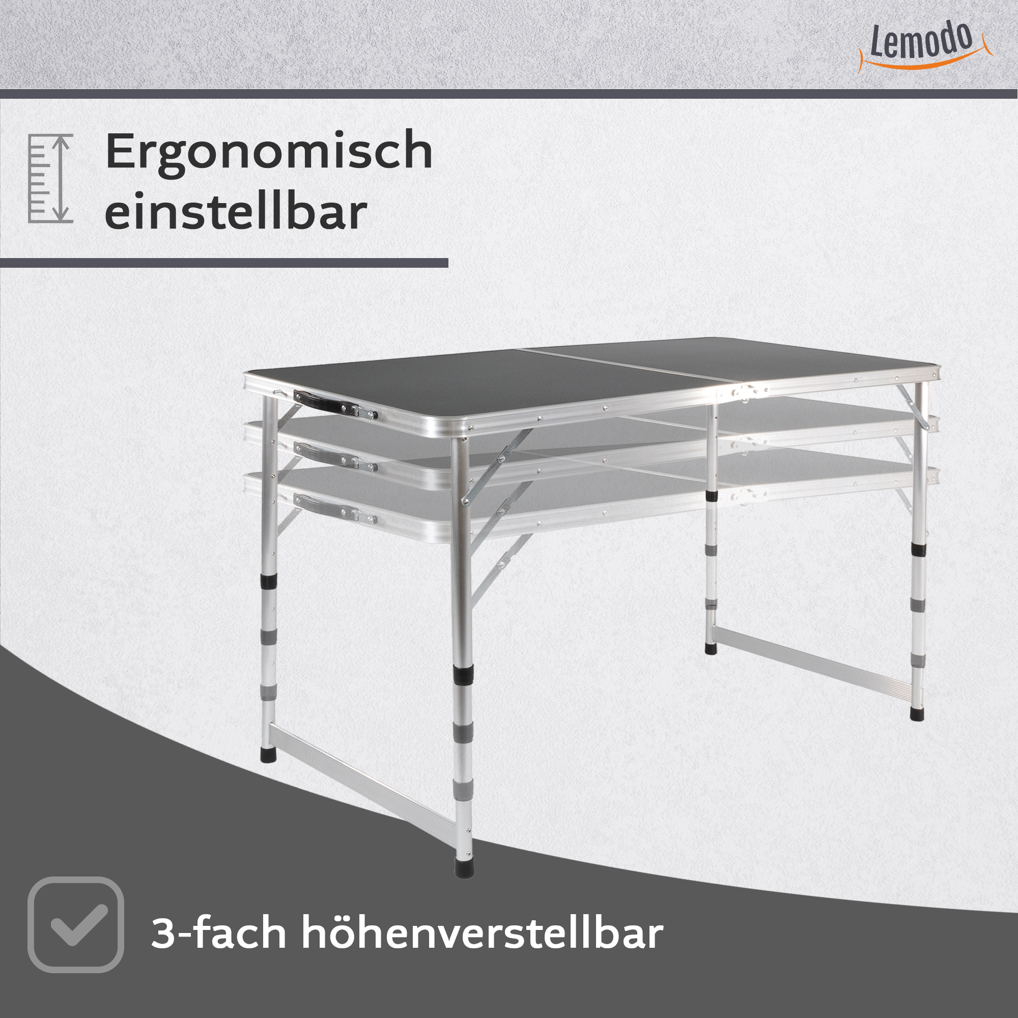 Produktinformationen "Campingtisch höhenverstellbar, Klapptisch 120 x 60 cm, Tapeziertisch"