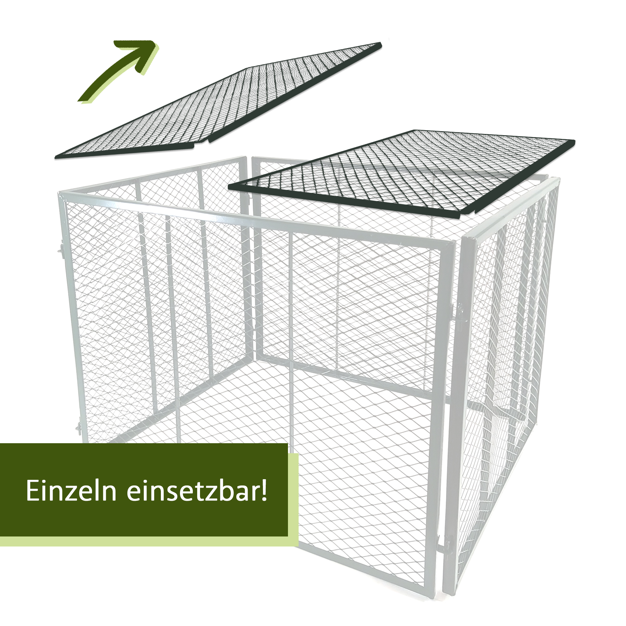 Der Deckel für Metallkomposter dunkelgrün im zweiteiligen Set hilft dir dabei, deinen Kompostplatz dauerhaft ordentlich, hygienisch und gut organisiert zu halten. Anstatt dass Küchen- und Gartenabfälle offen im Komposter liegen, deckst du sie mit stabilen, verzinkten Stahlgittern ab, die gleichzeitig für eine zuverlässige Belüftung sorgen. So bleibt der natürliche Rotteprozess in Gang, ohne dass dein Kompost wie ein offener Haufen wirkt oder unangenehm ins Auge fällt. Durch die zwei separaten Gitterelemente kannst du deinen Komposter besonders komfortabel nutzen: Ein Element lässt sich bei Bedarf einfach anheben oder abnehmen, während das andere weiterhin als Abdeckung dient. Das ist praktisch, wenn du regelmäßig Grünschnitt nachlegst oder fertige Komposterde entnehmen möchtest, ohne den kompletten Deckel abzunehmen. Gleichzeitig schützt der Deckel deinen Kompost vor Regen, Wind und ungebetenen Gästen wie Ratten, Mäusen oder Vögeln – für einen saubereren, sichereren und effizienteren Kompostbetrieb in deinem Garten.Zweiteiliger Deckel für Metallkomposter: ideal als Zubehör für gängige StecksystemeLeichter Zugang zum Kompost: ein Gitterelement öffnen oder abnehmen, das andere weiterhin als AbdeckungnutzenAus 2-fach verzinktem Stahl gefertigt: robust, wetterbeständig und für den dauerhaften Außeneinsatz geeignetFeinmaschiges Streckmetall mit ca. 34 x 20 mm Maschenweite für optimale Belüftung bei sicherem AbschlussSicherer Schutz vor Tieren wie Ratten, Mäusen und Vögeln – Kompostreste bleiben im BehälterAusschnitte im Rahmensorgen für eine sichere Auflage ohne Verrutschen, ganz ohne zusätzliche BefestigungVerwendbar als Deckel oder als Bodenelement, um den Komposter nach unten hin gegen Nager abzuschirmenProduktdetails Größe M: Außenmaß: ca. 87 x 44 x 3 cm (L x B x H)Material: Stahl, verzinktFarbe: pulverbeschichtet in dunkelgrünGewicht: ca. 2,0 kgMaterialstärke: 1 mmMaschenweite: 34 x 20 mm Produktdetails Größe L:Außenmaß: ca. 107 x 54 x 3 cm (L x B x H)Material: Stahl, verzinktFarbe: pulverbeschichtet in dunkelgrünGewicht: ca. 2,3 kgMaterialstärke: 1 mmMaschenweite: 34 x 20 mm Produktinformationen: Zweiteiliger Deckel für leichten Zugang zum Kompost Sicherer Schutz vor Tieren Ausschnitte im Rahmen für eine sichere Auflage ohne Verrutschen Verwendbar als Deckel oder Boden Deckel für Metallkomposter – sicherer Schutz für deinen Kompost Ein offener Komposter im Garten lockt schnell Vögel, Katzen oder andere Tiere an und verstreut leichtes Material wie Laub oder Grasschnitt im Umfeld. Mit dem Deckel für Metallkomposter in grün deckst du deinen Kompost zuverlässig ab, ohne auf eine gute Belüftung verzichten zu müssen. Das stabile Metallgitter bildet eine sichere Barriere nach oben oder unten und sorgt dafür, dass der Inhalt da bleibt, wo er hingehört. Gleichzeitig bleibt dein Komposter optisch aufgeräumt und fügt sich mit der dunkelgrünen, pulverbeschichteten Oberfläche dezent in die Umgebung ein. Statt auf improvisierte Abdeckungen wie Bretter oder Folien zurückzugreifen, erhältst du mit diesem passgenauen Metallkomposter Deckel eine dauerhafte, saubere Lösung. Robuste Materialien für den Einsatz im Außenbereich Der Deckel besteht aus verzinktem Stahl mit einer Materialstärke von 1 mm. Die Verzinkung unterstützt den Korrosionsschutz, während die pulverbeschichtete Oberfläche in Dunkelgrün zusätzliche Widerstandsfähigkeit gegenüber Witterungseinflüssen bietet. So ist der Komposter Deckel Metall auf den dauerhaften Einsatz im Garten ausgelegt. Die Gitterstruktur mit einer Maschenweite von 34 x 20 mm sorgt dafür, dass Luft und Feuchtigkeit weiterhin zirkulieren können – wichtig für einen aktiven Rotteprozess im Kompost. Gleichzeitig wird grobes Material zuverlässig zurückgehalten. Dadurch bleibt dein Kompost gut durchlüftet, ohne dass Äste, Zweige oder Laub aus dem Behälter ragen. Mit einem Gewicht von ca. 2,0 kg lässt sich der Deckel leicht handhaben, ist aber dennoch stabil genug, um sicher auf dem Komposter zu liegen. Zweiteiliger Deckel für komfortables Arbeiten am Kompost Ein großer Vorteil dieses Produkts ist der zweiteilige Aufbau. Statt eine schwere Abdeckung komplett anheben zu müssen, kannst du jeweils nur eine Seite öffnen. So greifst du gezielt auf bestimmte Bereiche zu, wendest den Kompost oder füllst neues Material nach, ohne den gesamten Deckel abnehmen zu müssen. Der zweiteilige Deckel erleichtert dir die Arbeit im Alltag: Du öffnest genau den Teil, den du gerade brauchst, und schließt ihn danach wieder mit wenigen Handgriffen. Damit sparst du Zeit und Kraft – gerade dann, wenn du öfter kompostierst oder mehrere Behälter im Garten betreibst. Die im Rahmen vorgesehenen Ausschnitte sorgen dafür, dass der Deckel sicher auf dem Metallkomposter aufliegt und nicht verrutscht. Das erhöht die Stabilität bei Wind und verhindert, dass der Deckel ungewollt zur Seite rutscht, wenn du am Kompost arbeitest. Flexible Nutzung als Deckel oder Boden Besonders praktisch: Dieser Deckel für Metallkomposter lässt sich nicht nur als Abdeckung, sondern auch als Boden verwenden. Nutzt du ihn als Gitterboden, schützt du deinen Kompost von unten vor ungebetenen Gästen wie Nagern, ohne den Kontakt zum Erdreich komplett zu blockieren. So bleibt der Inhalt weiterhin in Verbindung mit dem Boden, Mikroorganismen und Regenwürmer können den Kompost erreichen, während größere Tiere zuverlässig ferngehalten werden. Gleichzeitig verhindert das Gitter, dass Material von unten herausfallen kann, etwa bei unebenem Untergrund. Durch die Kombination aus Deckel- und Bodenfunktion bist du flexibel in der Gestaltung deines Kompostplatzes. Du kannst den Deckel je nach Aufbau deines Metallkomposters oben, unten oder in beiden Positionen einsetzen und so genau den Schutz realisieren, den du brauchst. Für wen eignet sich der Deckel und wo wird er eingesetzt? Der Metallkomposter Deckel richtet sich an alle, die