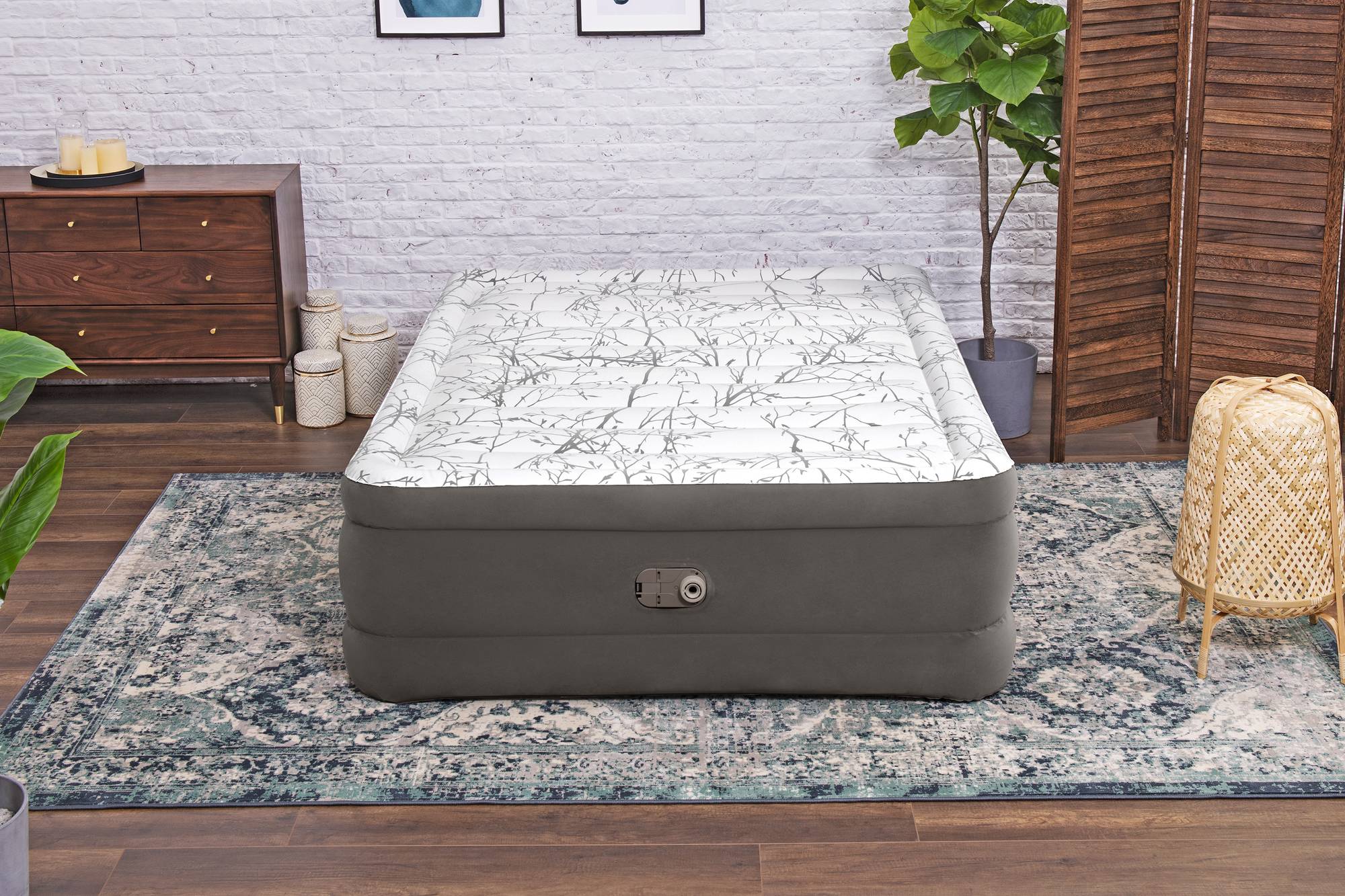 Wachen Sie vollkommen erholt mit dem Bestway® TriTech™ Luftbett Fashion Flock™ auf! Dieses verspricht Luftbett Stärke, Langlebigkeit und Komfort für die ganze Nacht. Dank ihrer kompakten Größe und der integrierten Elektropumpe ist sie in kürzester Zeit einsatzbereit. Die antimikrobielle Ultra-Fresh® -Oberfläche wird Ihr Bett vor dem Wachstum von geruchsverursachenden Bakterien, Schimmel und Mehltau auf der Schlafoberfläche geschützt. Langlebige Konstruktion: Die komfortable Liegefläche und die robuste Konstruktion bieten alle Voraussetzungen für einen erholsamen Schlaf. Das Luftbett besteht aus 3-lagigem TriTech™ -Material, welches Langlebigkeit und Festigkeit bietet und gleichzeitig dafür sorgt, dass das Bett trotz mehrmaligem Auf- und Abpumpen seine Formfestigkeit behält. Außerdem wird der Luftverlust während der Nacht minimiert. Das TriTech™ -Material erhöht den internen Dehnungswiderstand und bietet eine formschöne Schlaflösung. Dieses langlebige, belastungsgeprüfte Material hält all dem Gewicht und den Bewegungen stand, die mit einem erholsamen Schlaf einhergehen. Elegantes, trendiges Muster: Das Luftbett ist vollständig mit dem trendigen Fashion Flock™ -Design ausgestattet. Das komfortable Material mit elegantem Aufdruck, verleiht dem Luftbett ein hochwertiges Erscheinungsbild. Es fügt sich nahtlos in jedes Gäste- oder Wohnzimmer sowie überall dort ein, wo ein zusätzlicher Schlafplatz benötigt wird. Einfacher Aufbau: Die integrierte Elektropumpe pumpt das Luftbett in 300 Sekunden auf, sodass es direkt einsatzbereit ist. Am nächsten Morgen kann mithilfe dieser das Luftbett mühelos wieder entleert werden. Legen Sie das zusammengeklappte Bett einfach in die mitgelieferte Aufbewahrungstasche, um es bequem zu transportieren und zu lagern.