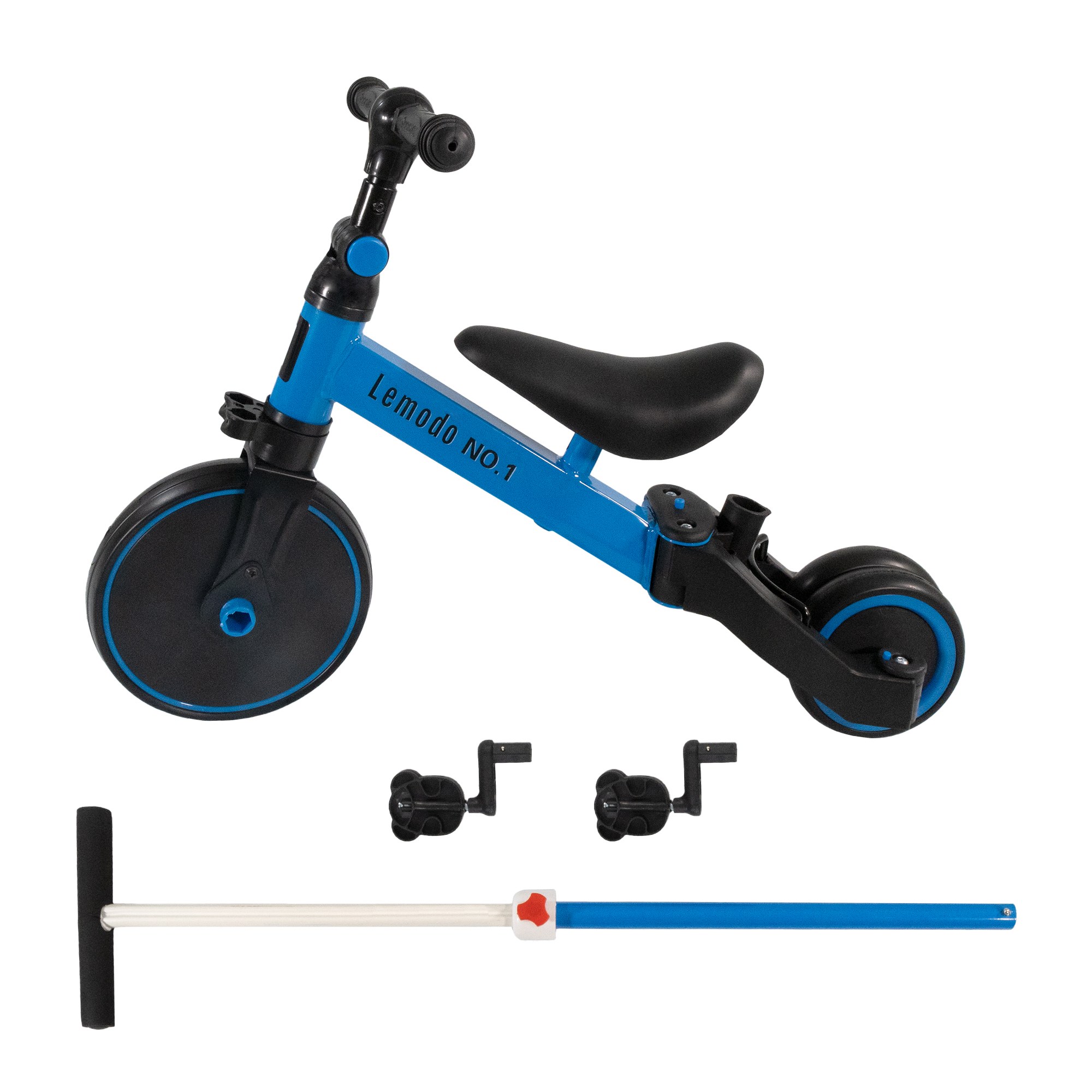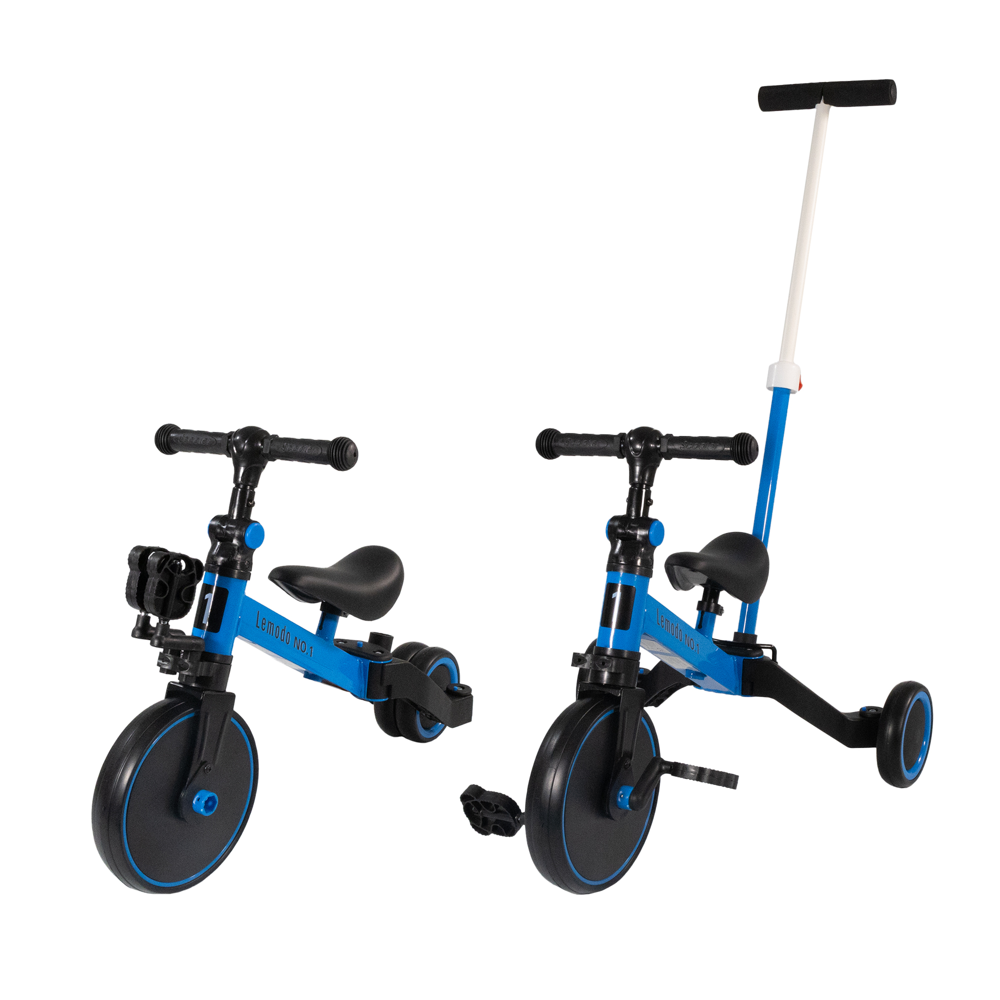 Dreirad blau mit Schiebestange, höhenverstellbares Laufrad, 3in1 Kinderfahrzeug bis 5 Jahre