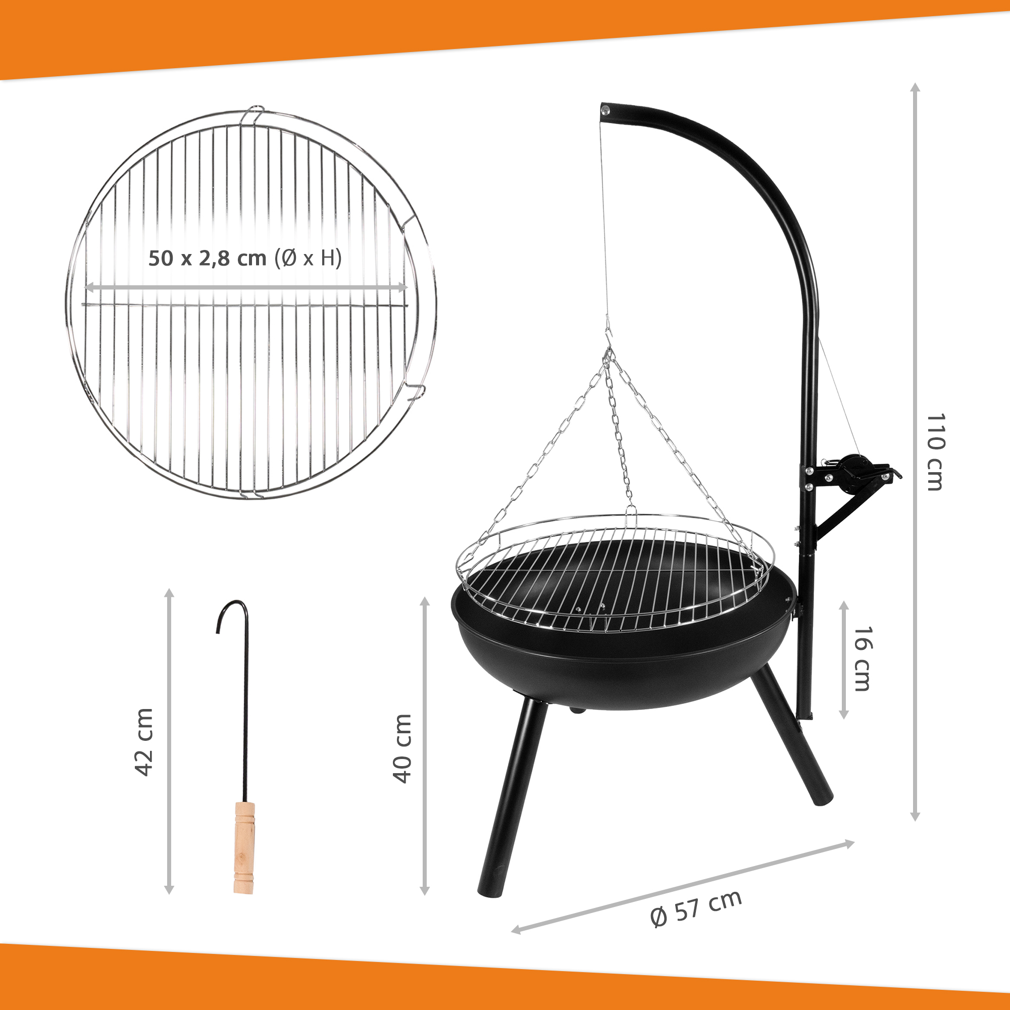 Produktinformationen "Feuerschale mit Schwenkgrill, Holzkohlegrill mit Kurbel und höhenverstellbarem Grillgitter"