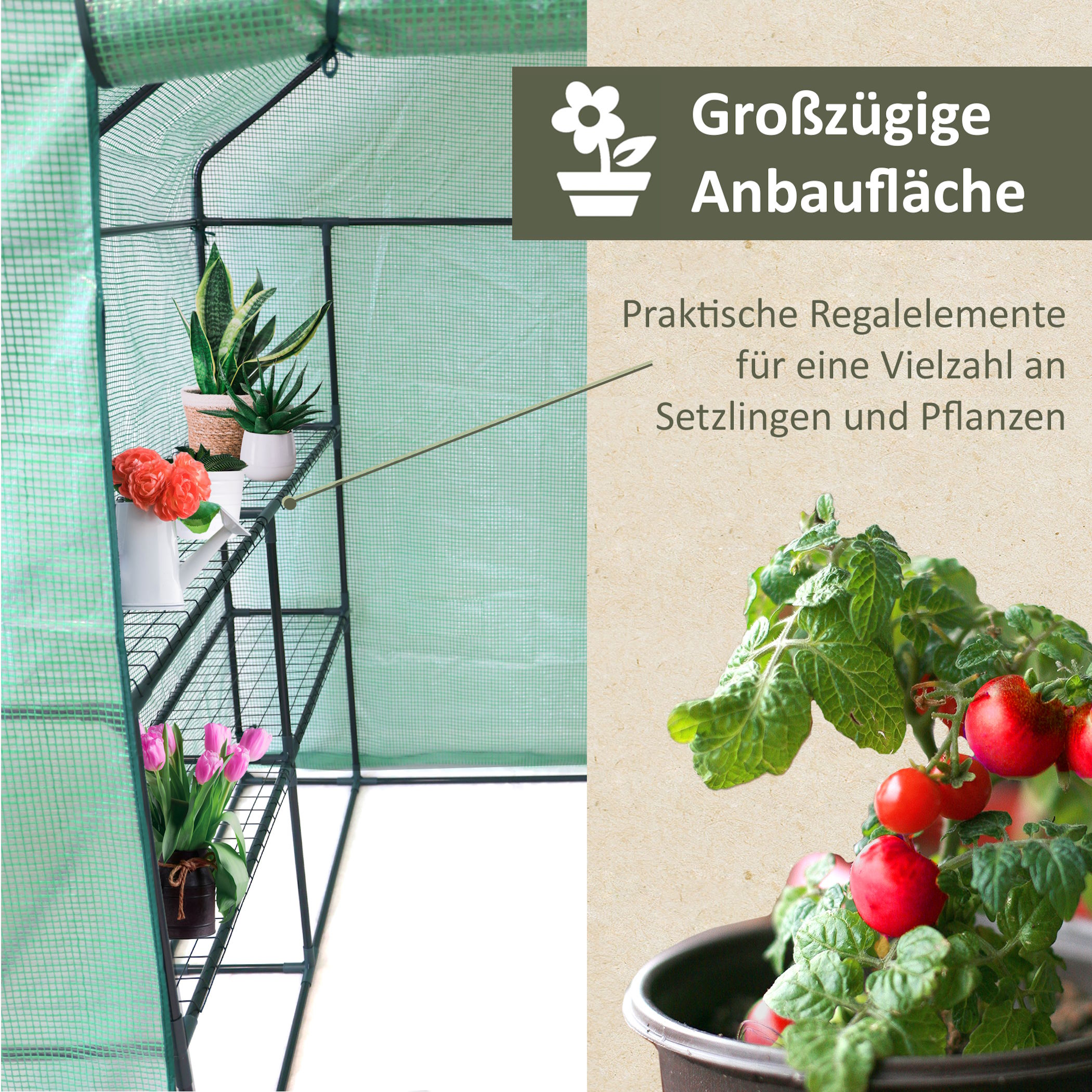 - BESSERE ERNTE: Durch die geschützte Umgebung im Tomatengewächshaus finden Deine Pflanzen bessere Anbaubedingungen vor. In einem Tomaten Gewächshaus wachsen sie schneller und können früher geerntet werden. Zudem verlängerst Du Deine Anbausaison