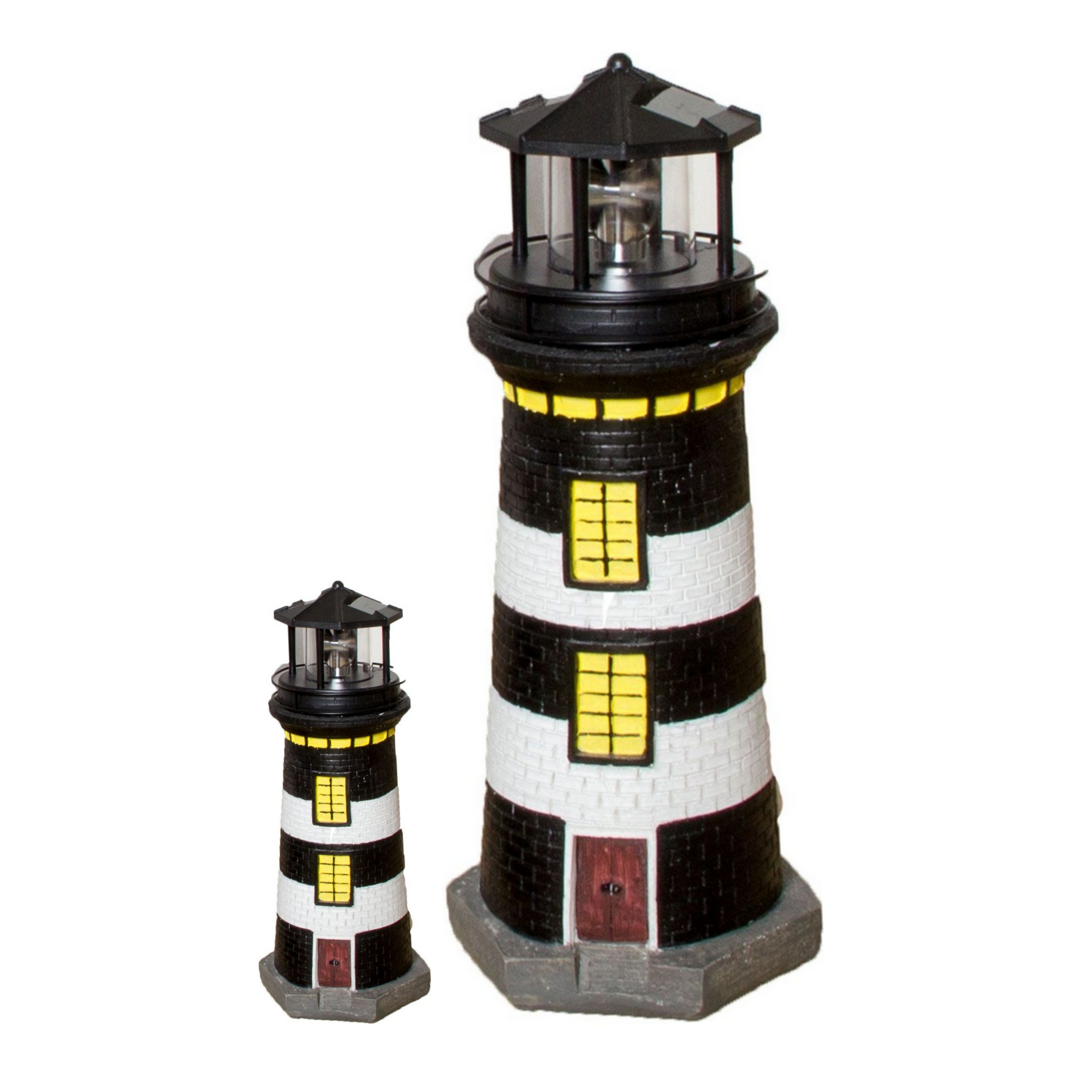Gartendeko Leuchtturm mit Solar 37 cm, handbemalte Gartenfigur schwarz,weiß