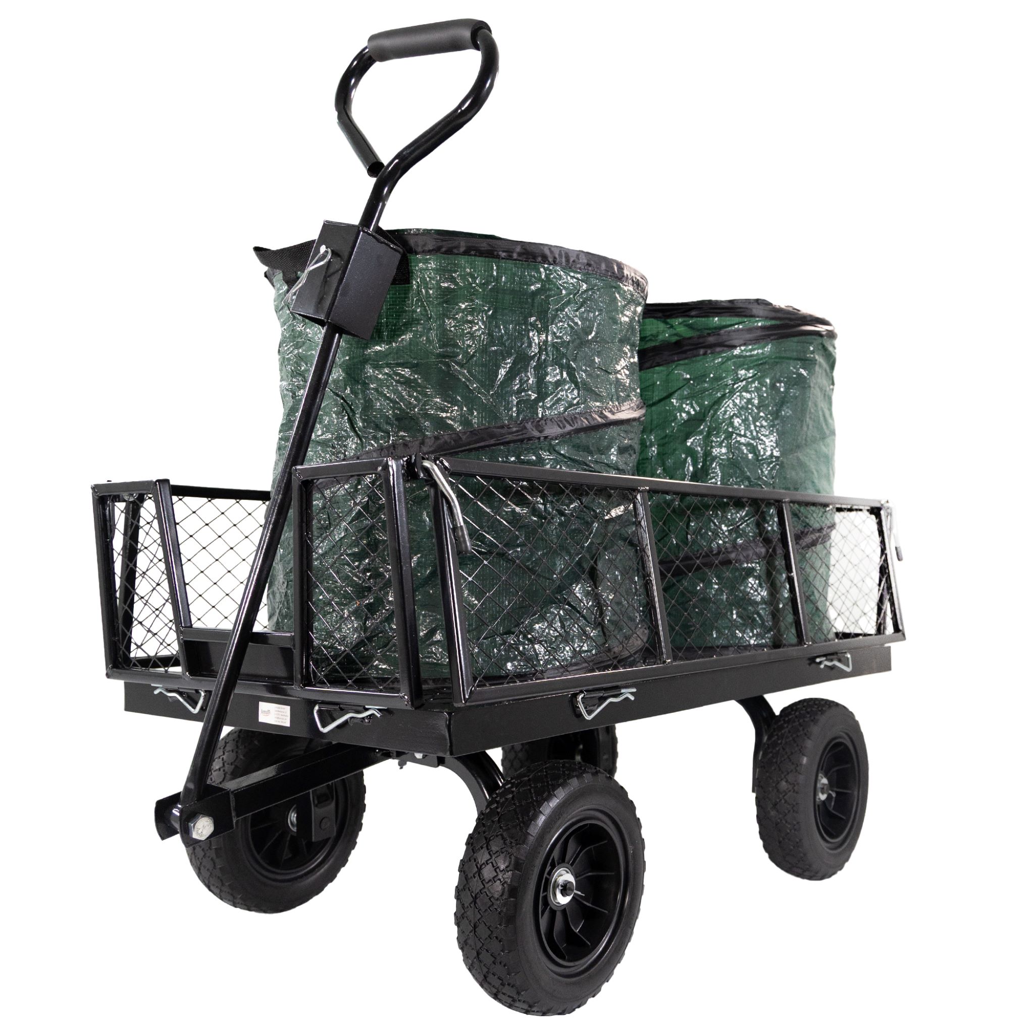 Gartenwagen Metall mit 2 Laubsäcken, 300 kg belastbar, Gartenarbeit