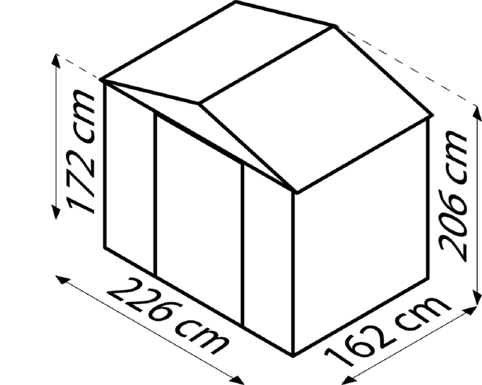 - Außenmaß: 236 x 174 x 206 cm (L x B x H)