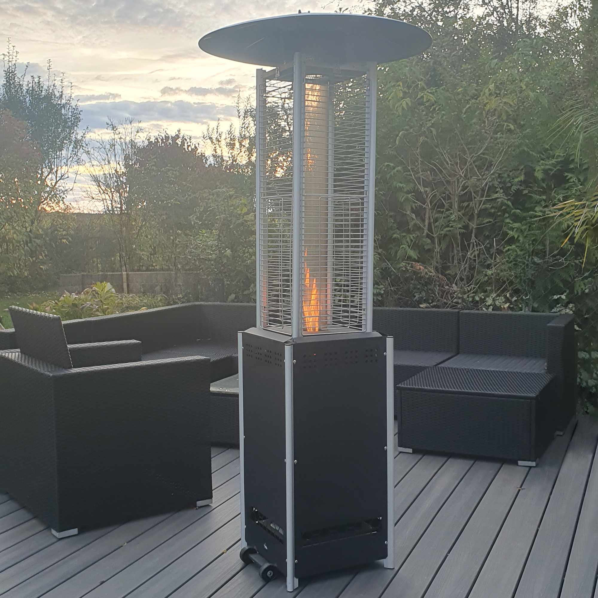 Ob für eine stimmungsvolle Beleuchtung bei einer Abendveranstaltung oder als kuschelige Wärmequelle während eines entspannten Wochenendes – dieser Terrassenheizer ist die ideale Ergänzung für jeden Außenbereich und stellt sicher, dass Du und Deine Gäste sich stets wohl und willkommen fühlen.