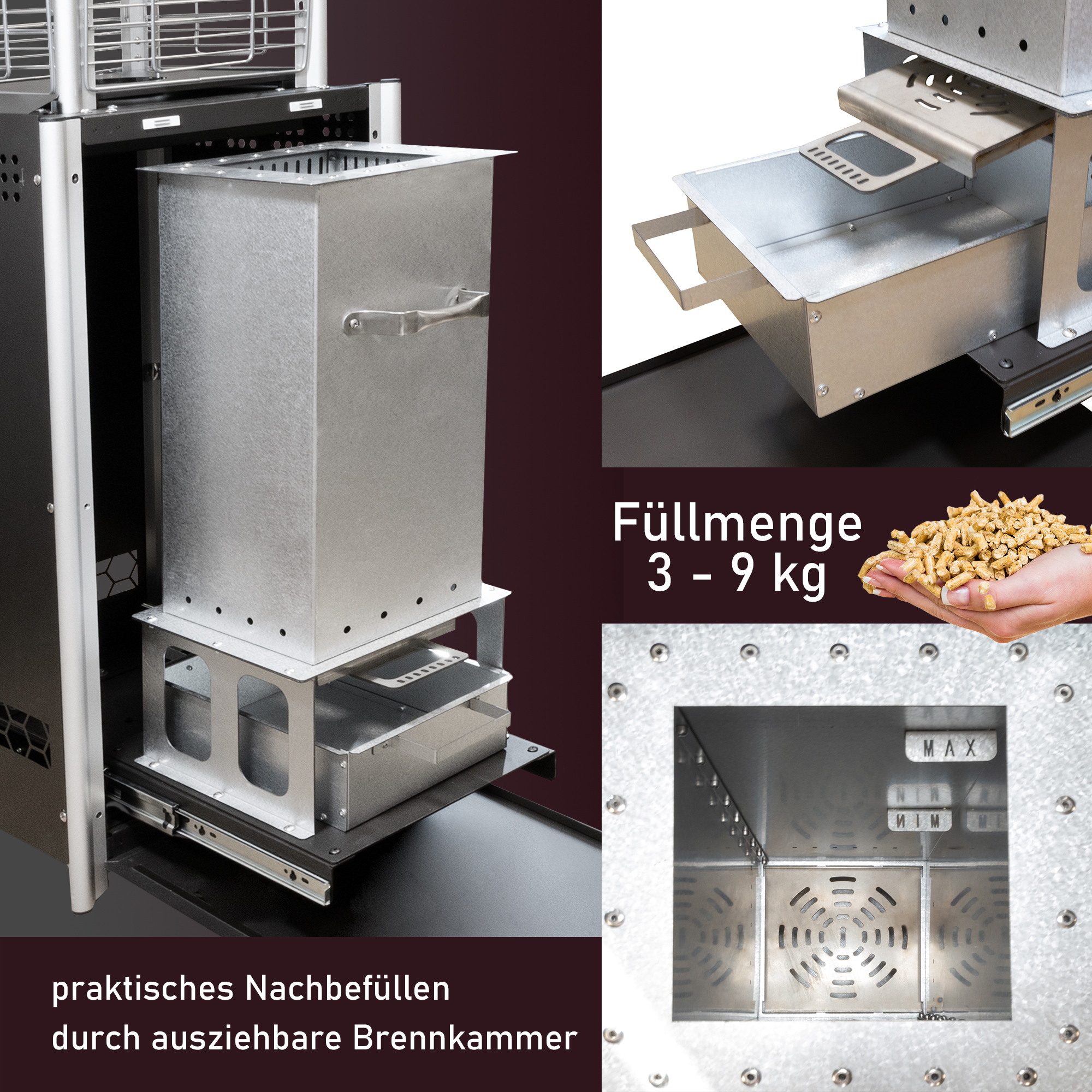 - Größe Pelletbunker: maximal 9 KG