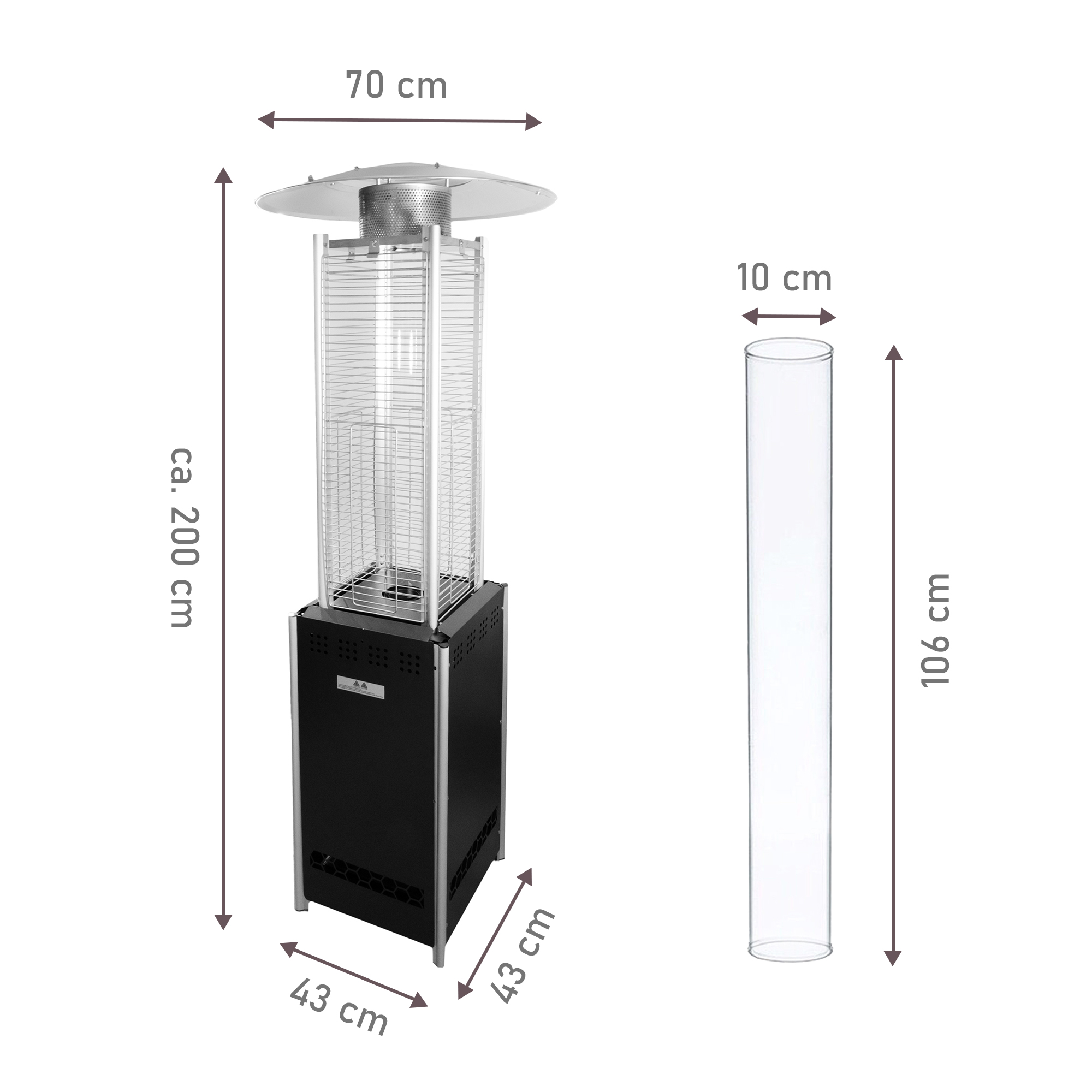 - Abmessungen: 43 x 43 x 200 cm (L x B x H)