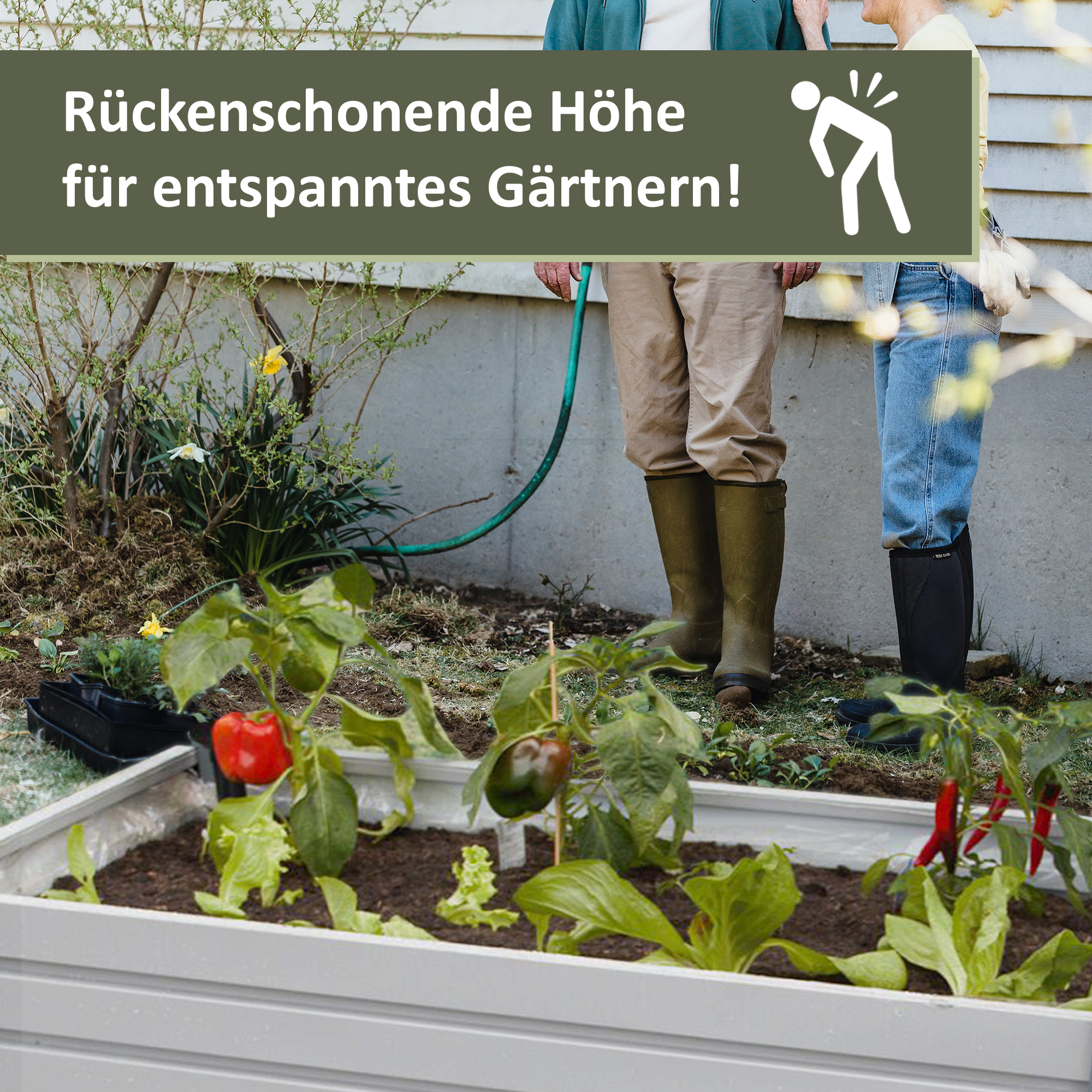 - RÜCKENSCHONEND GÄRTNERN: Aufgrund der erhöhten Position des Hochbeetes gehört das unbequeme Bücken und Knien der Vergangenheit an. Stattdessen kannst Du bequem im Sitzen oder Stehen am Pflanzkasten arbeiten