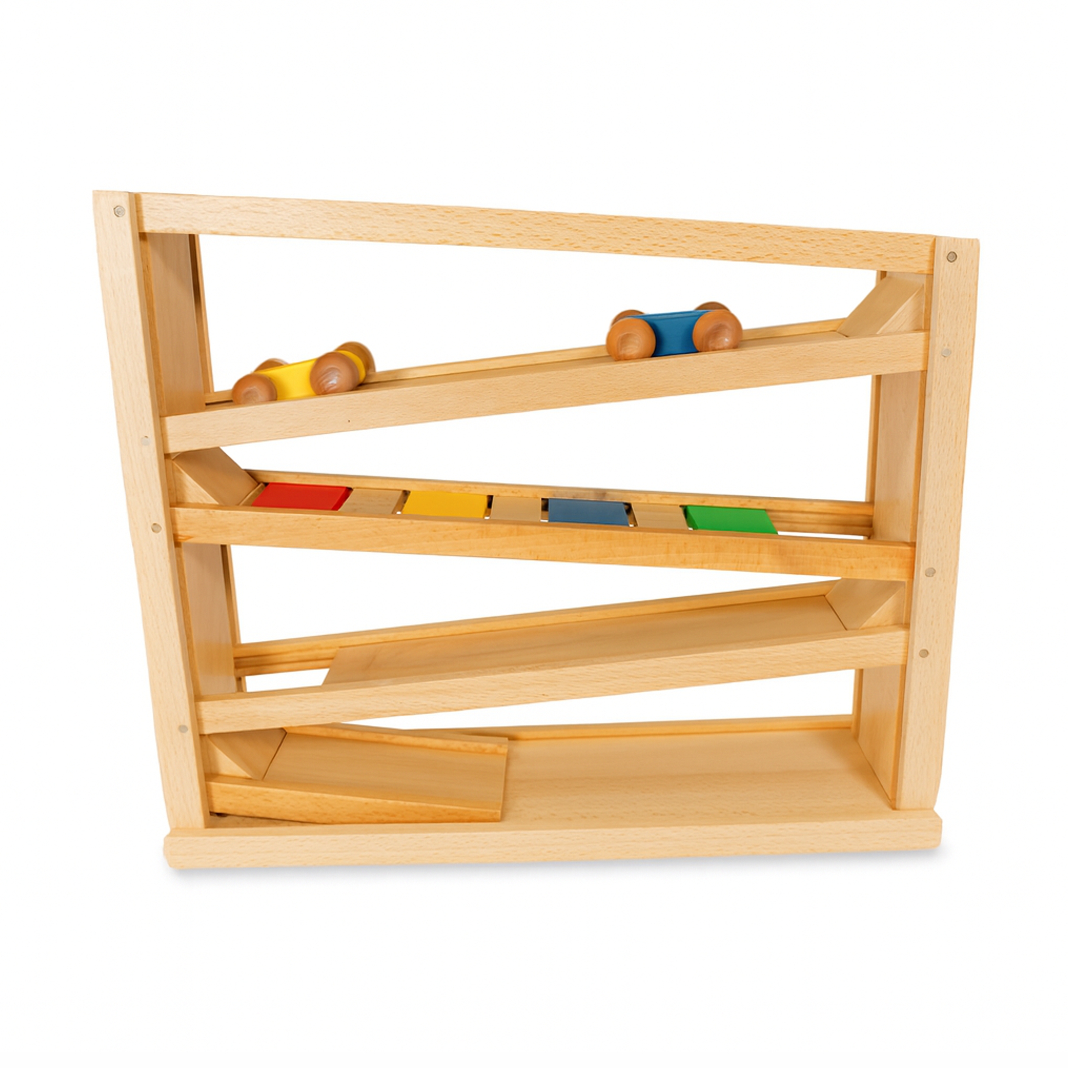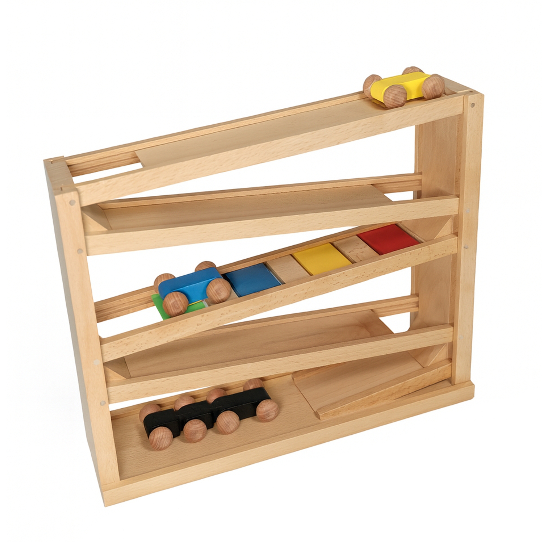 Holz Kugelbahn Buche, Autorennbahn ab 2 Jahren mit 3 Autos und 2Kugeln