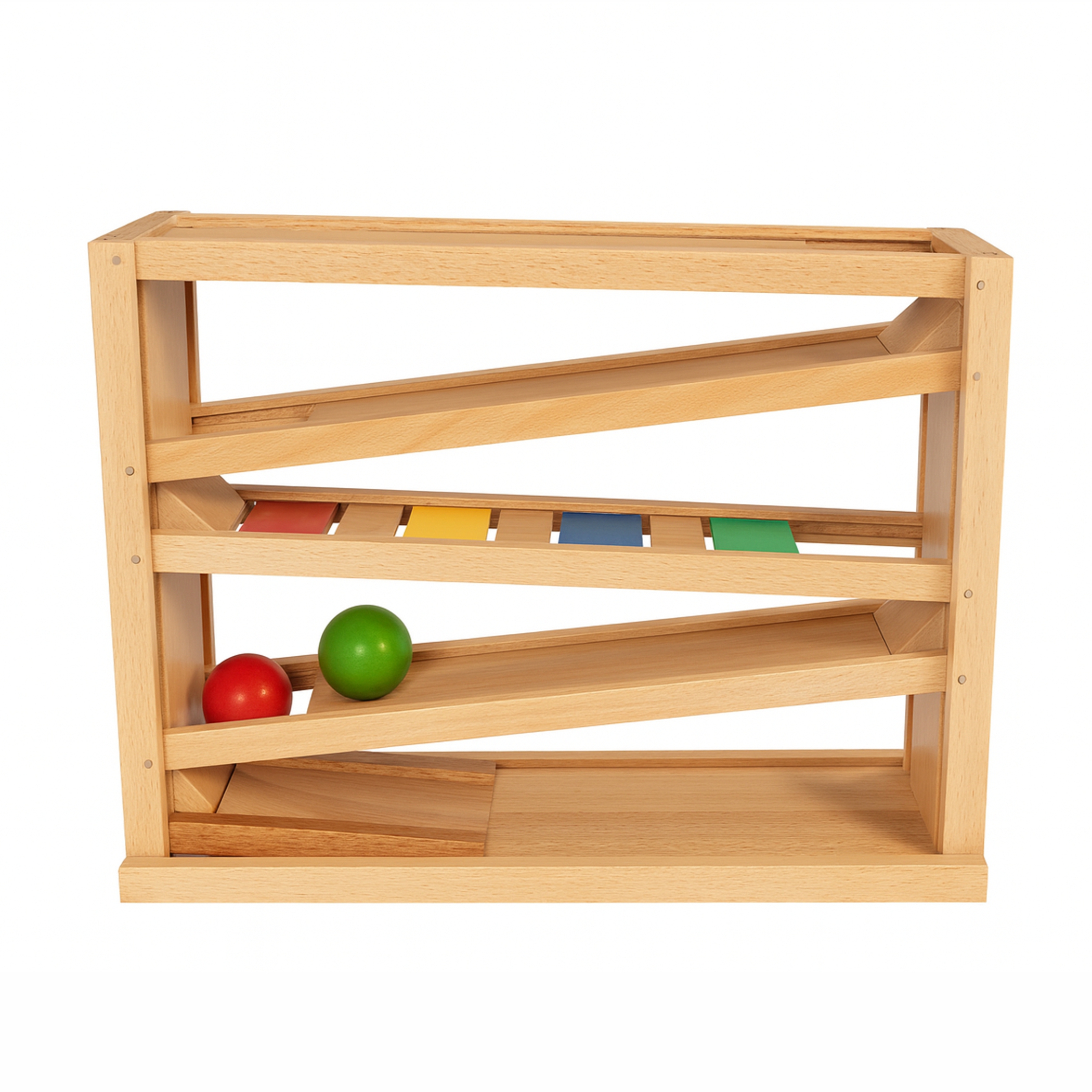 Statt blinkender Lichter und lauter Geräusche setzt diese Kugelbahn bewusst auf Reduktion. Dein Kind konzentriert sich auf das Wesentliche: Ursache und Wirkung, Bewegung, Tempo und die eigenen Handgriffe. Das entspricht dem Montessori-Gedanken von freiem Experimentieren, Beobachten und Wiederholen. Die Holz Kugelbahn ist aus massiver Buche gefertigt und bleibt durch ihr zeitloses Design lange aktuell. Der natürliche Look fügt sich harmonisch in Kinderzimmer oder Wohnzimmer ein – du musst kein kunterbuntes Plastik akzeptieren, wenn du lieber eine warme Holzoptik magst.
