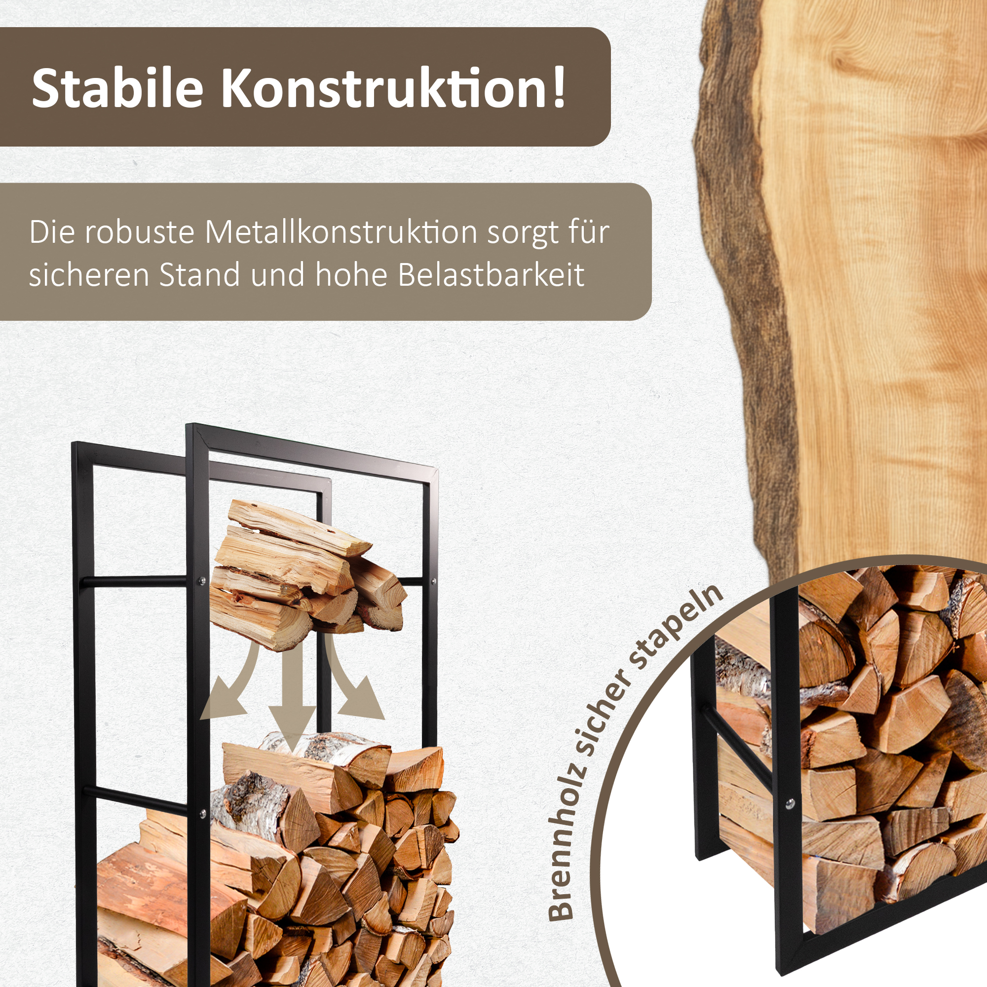 - Geeignet zur Lagerun von Brennholz und Briketts