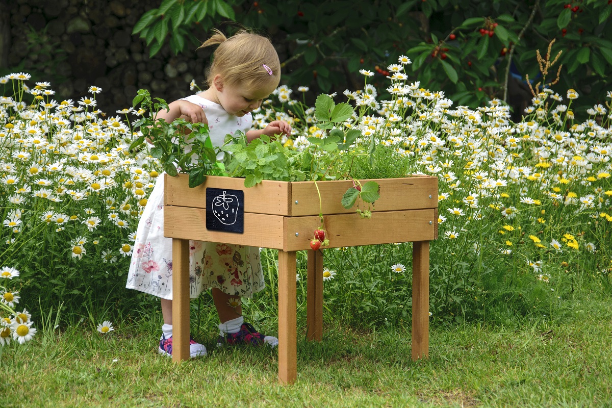 Hochbeet für Kinder mit Kreidetafel, 45 cm hoch, wetterfest