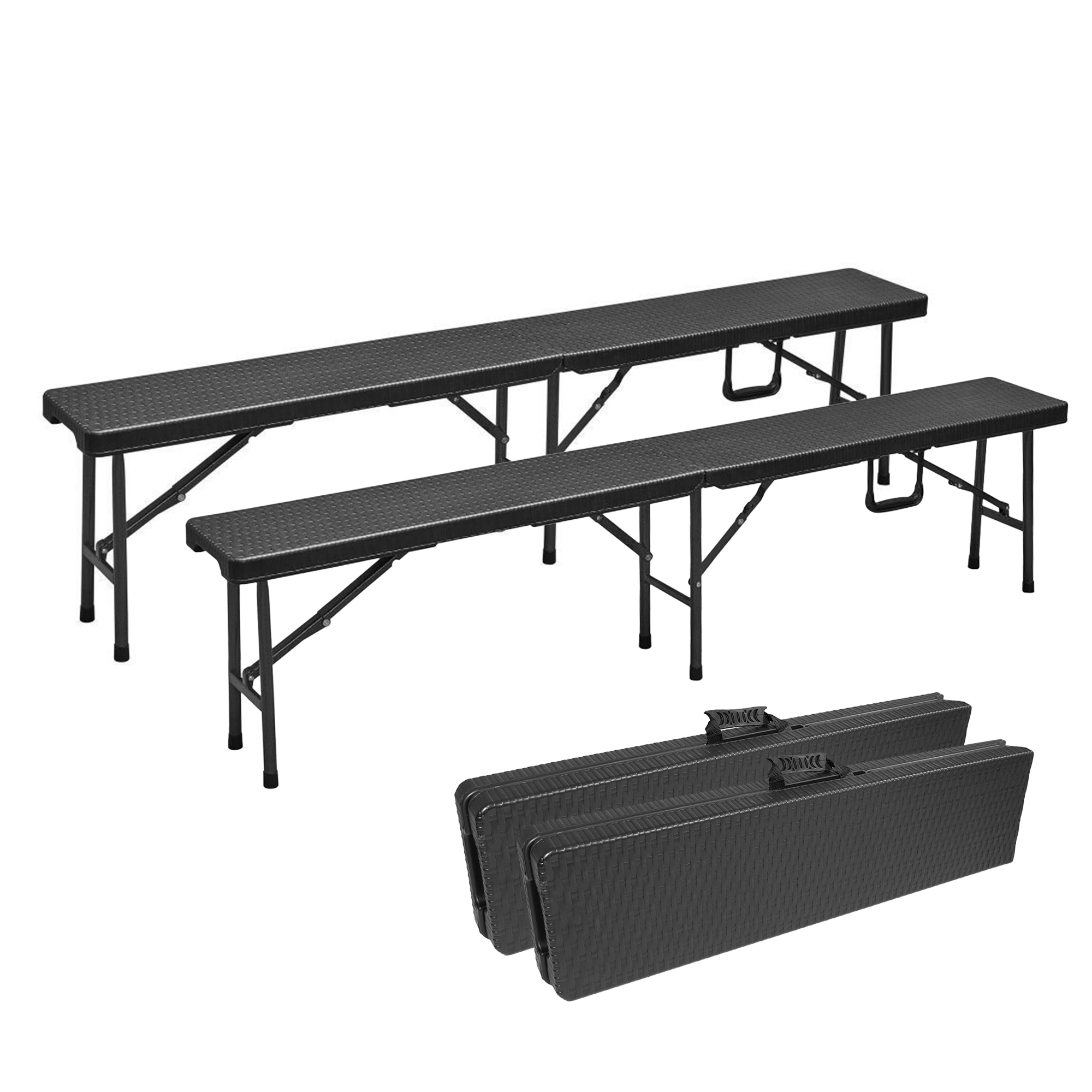 Klappbank, 2-er Set, Rattan-Optik, 180 cm, Bierzeltbank schwarz