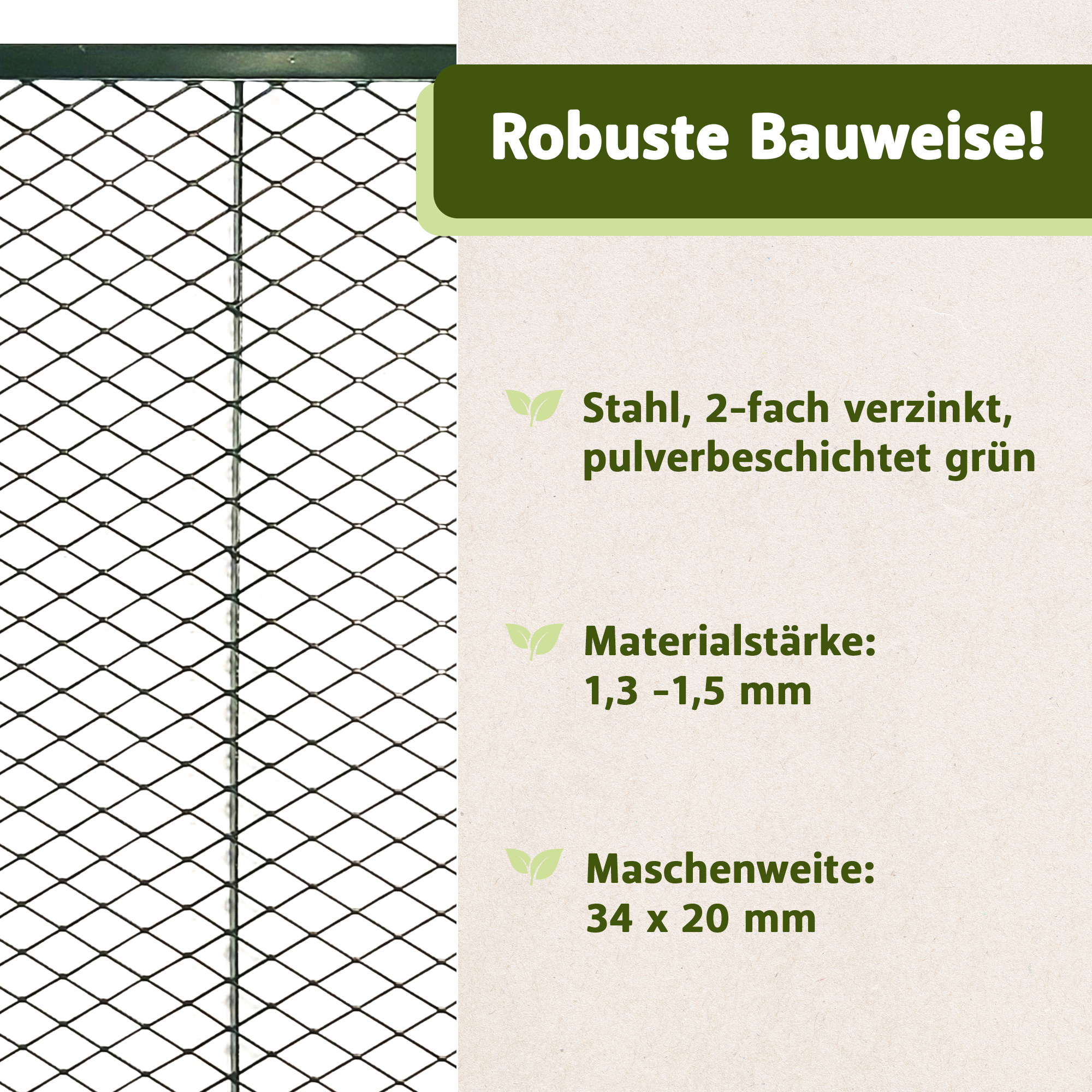 - Maschenweite: 35 x 20 mm