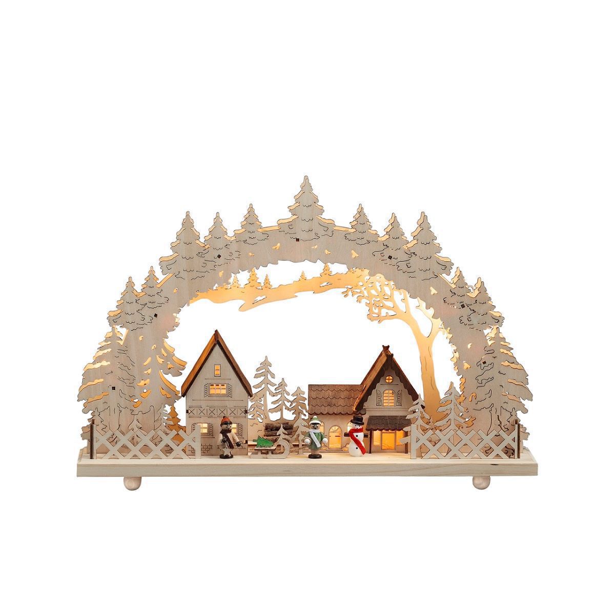 LED Holzsilhouette Winterdorf, naturfarben, Winterdorf mit Beleuchtung