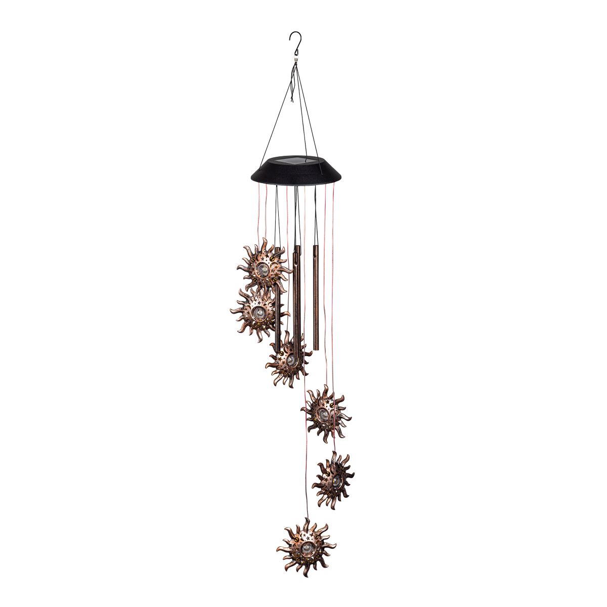 LED Solar Windspiel Sonne, Solarleuchten hängend mit Klangstäben