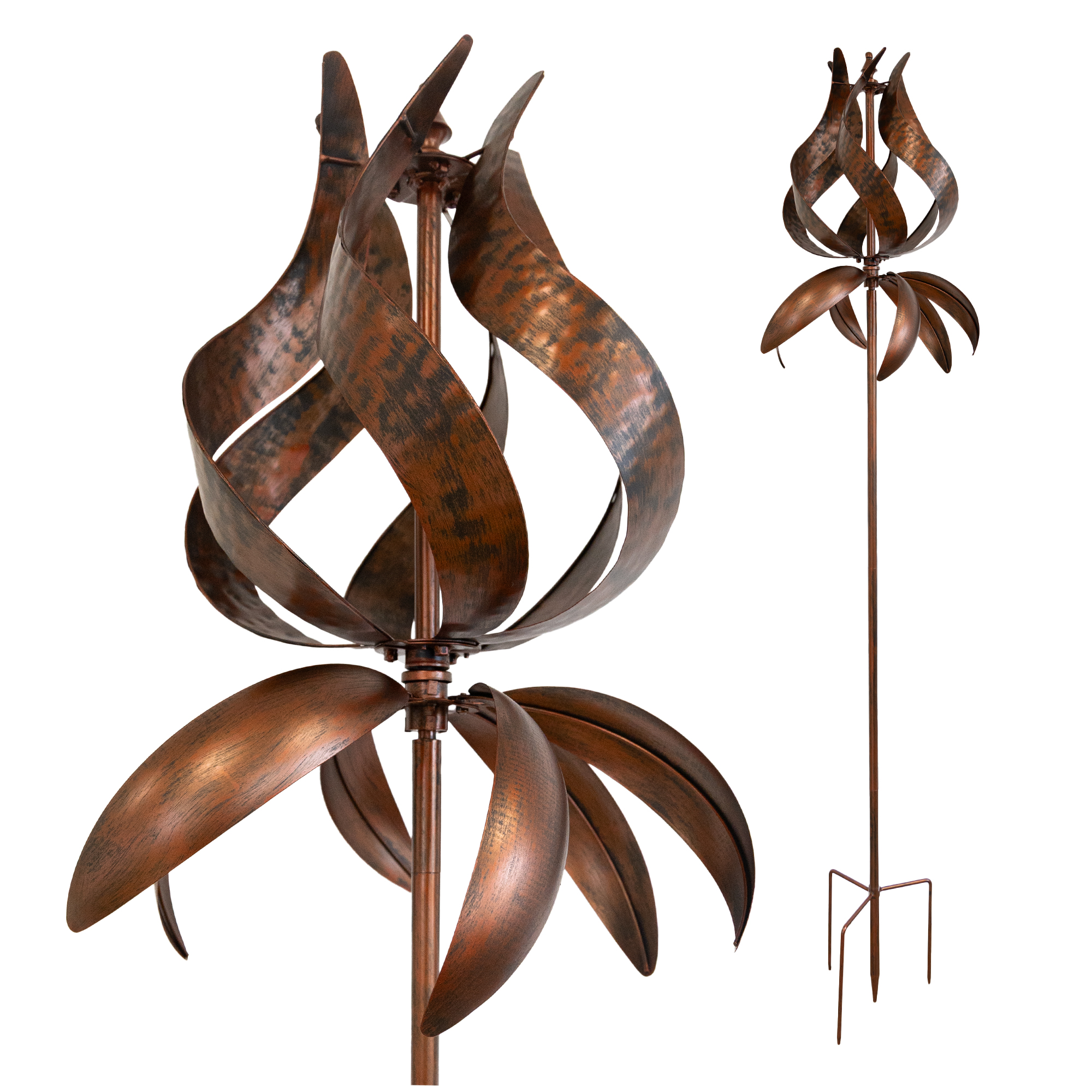 Windspiele erfreuen sich großer Beliebtheit als Dekoration für Gärten und Terrassen. Sie sind nicht nur optisch ansprechend, sondern fördern auch Entspannung und meditative Momente. In unserer hektischen Welt fällt es oft schwer, innere Ruhe zu finden. Ein Windrad kann dabei helfen, eine friedliche Atmosphäre zu schaffen.Die sanfte Drehbewegung des Windspiels hat eine beruhigende Wirkung und trägt zu einem angenehmen Ambiente bei. Dank des leichtlaufenden Kugellagers dreht sich das Windspiel lautlos, sodass Du die Bewegung ungestört genießen kannst. Außerdem ist ein Windrad als Gartendeko ein wunderbares Geschenk, da es sowohl ästhetisch ansprechend ist als auch positive Werte wie Freiheit und Fortschritt symbolisiert.Wenn Du Deinem Garten oder Deiner Terrasse eine besondere Atmosphäre verleihen möchtest, ist ein Windspiel aus Metall eine ausgezeichnete Wahl. ENTSPANNENDE ATMOSPHÄRE: Die ruhige Drehbewegung des Windrades kann beruhigend wirken und eine angenehme Atmosphäre schaffen. Beobachte einfach die sanfte Bewegung des Windspiels und lasse Dich von ihr in einen entspannten Zustand bringen IMMER AM WIND: Unser Windrad dreht sich von selbst in Windrichtung. Dank leichtgängiger Kugellager setzt sich unser lautlos drehender Windspinner selbst bei einem leichten Luftzug schon in Bewegung SCHÖNES GESCHENK: Ein Gartenstecker als Gartendeko ist ein Geschenk, das nicht nur ästhetisch ansprechend ist, sondern auch eine symbolische Bedeutung hat und positive Emotionen hervorruft. Du wirst dem Beschenkt angenehm in Erinnerung bleiben ÄSTHETISCHE GARTENDEKO: Gartenwindspiel sind ästhetisch ansprechend und können als Blickfang in Deinem Garten dienen. Ihre rotierende Bewegung ziehen die Aufmerksamkeit auf sich und verleihen Deinem Außenbereich eine ästhetische Note Produktdetails: Material: Metall Farbe: antikes Kupfer und mattgraues Silber Durchmesser Windrad: ca. 60 cm Breite: ca. 16 cm Gesamthöhe: ca. 213 cm Gewicht: ca. 4,7 kg Produktinformationen: leichtlaufendes Windrad mit Kugellagern Windrad richtet sich nach dem Wind aus dekoratives Highlight im Garten, Terrasse oder Balkon mehrteiliger Metallstab mit 3-er Erdspieß ENTSPANNENDE ATMOSPHÄREIn unserer hektischen Welt ist es oft schwierig, einen Moment der Ruhe und Entspannung zu finden. Doch manchmal sind es die einfachen Dinge, die uns am meisten helfen können. Ein Windrad zum Beispiel. Es kann nicht nur eine schöne Gartendeko sein, sondern auch eine Quelle der Entspannung und Meditation. Die sanfte Drehbewegung des Windrades wirkt beruhigend und schafft eine angenehme Atmosphäre. Wenn Du Dich einfach darauf konzentrierst und die Bewegung beobachtest, wirst Du merken, wie sich Dein Geist beruhigt und Du in einen meditativen Zustand versetzt wirst. Die Welt um Dich herum wird plötzlich leiser und du kannst dich vollkommen auf Dich selbst konzentrieren. So kannst du neue Energie tanken und gestärkt in den Alltag zurückkehren. Probier es doch einfach mal aus und lass Dich von der ruhigen Drehbewegung des Windrades in eine Welt der Entspannung entführen. IMMER AM WINDUnabhängig von den äußeren Bedingungen dreht sich unser Windrad immer in passende Windrichtung. Das Geheimnis der 360 Grad Rotation ist eine einfache Hülsen-Mechanik. Die Windradhalterung ist einfach nur aufgesetzt und kann sich dadurch frei um sich selbst drehen.Dank der Leichtigkeit und Effizienz der Kugellager in den Rotoren ist unser Windspinner in der Lage, bereits bei geringen Luftströmungen in Bewegung zu kommen. Selbst ein sanfter Luftzug genügt, um das Windspiel anzutreiben und es zu einer beeindruckenden visuellen Attraktion werden zu lassen. Dabei bleibt das Geräuschniveau auf ein Minimum reduziert, sodass die Umgebung ungestört bleibt. SCHÖNES GESCHENKEin Windrad als Gartendeko ist ein wahrhaft einzigartiges und bedeutungsvolles Geschenk, das weit über seine ästhetische Attraktivität hinausgeht. Es bietet eine einzigartige Kombination aus visuellem Reiz, symbolischer Bedeutung und emotionaler Resonanz, die es zu einem unvergesslichen Geschenk macht.Die ästhetische Anziehungskraft eines Windspiels als Gartendekoration ist unbestreitbar. Die sanften, sich drehenden Räder fangen das Licht ein und erzeugen faszinierende Reflexionen und Schattenspiele. Sie fügen eine dynamische Dimension zu jedem Garten hinzu und dienen als Blickfang, der die Aufmerksamkeit auf sich zieht. Die visuelle Pracht des Windrads wird jeden Tag Freude bereiten und den Garten des Empfängers zu einem noch schöneren Ort machen.Darüber hinaus ist die symbolische Bedeutung eines Windrads als Gartendeko ein weiterer Grund, warum es ein besonderes Geschenk ist. Windräder werden oft mit positiven Werten wie Freiheit, Energie und Fortschritt in Verbindung gebracht. Indem Du eine Luftschraube verschenkst, zeigst Du Deine Wertschätzung für diese Werte und übermittelst dem Empfänger eine Botschaft der Inspiration und des persönlichen Wachstums. Es kann auch als Symbol für neue Möglichkeiten und positive Veränderungen stehen, und ermutigt den Empfänger, nach vorne zu streben und seine Träume zu verfolgen. Das Windrad wird zu einer sichtbaren Erinnerung an diese Werte und Ziele, die der Empfänger schätzen und mit positiver Energie aufladen kann. ÄSTHETISCHE GARTENDEKOGarten Windspiele sind eine ästhetische Gartendeko, die einen wunderbaren Blickfang in Deinem Garten darstellen. Ihre faszinierende rotierende Bewegung zieht sofort die Aufmerksamkeit auf sich und verleiht Deinem Außenbereich eine wahrhaft ästhetische Note. Die kunstvolle Gestaltung und das geschickte Zusammenspiel von Farbe, Form und Material macht unser Gartenwindspiel zu einem visuellen Kunstwerk im Freien. Es bietet eine harmonische Kombination aus Ästhetik und Bewegung, die das Auge erfreut und eine angenehme Atmosphäre schafft. Die Bewegung der Windräder im Garten fasziniert nicht nur visuell, sondern erzeugt auch eine beruhigende und entspannende Atmosphäre. Sie laden daz