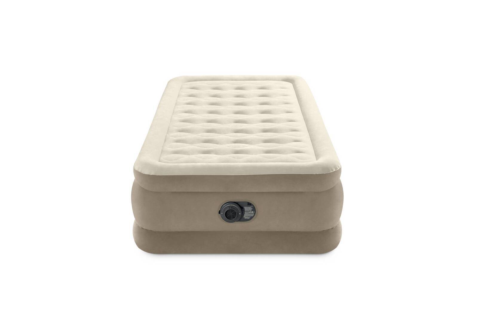 Erlebe ultimativen Schlafkomfort mit dem Intex Luftbett Dura-Beam Plus Deluxe, Modell: Pillow Rest Raised Twin inklusiver elektrischer Quick-Fill-Pumpe. Ob für Gäste, Campingausflüge oder den spontanen Einsatz - dieses Luftbett bietet maximalen Komfort und Bequemlichkeit. Dank der leistungsstarken Elektropumpe von 220 - 240 V lässt es sich in nur wenigen Minuten mühelos aufpumpen und ebenso schnell wieder entlüften um es platzsparend zu verstauen. Die samtig beflockte Oberfläche sorgt für ein angenehmes Liegegefühl, während die robuste Konstruktion mit internen Luftkammern Stabilität und ergonomische Unterstützung bietet. So genießt Du eine erholsame Nacht - fast wie im eigenen Bett!Produktdetails:0,52 mm qualitätsgeprüfte, wasserfeste, beflockte Oberseite 0,42 mm Vinyl Seitenwand und Boden Inkl. Quick-Fill-Pumpe 220-240 VKabellänge: 1,55 mAusstattung: 1 x AufbewahrungstascheProduktinformationen:Quick-Fill-Pumpe ermöglicht automatisches Aufblasen und Entleeren per KnopfdruckWeiche, beflockte Oberfläche sorgt für angenehmen SchlafkomfortEinfach zusammenfaltbar und leicht zu verstauenIdeal für Gäste oder Deinen nächsten Campingurlaub