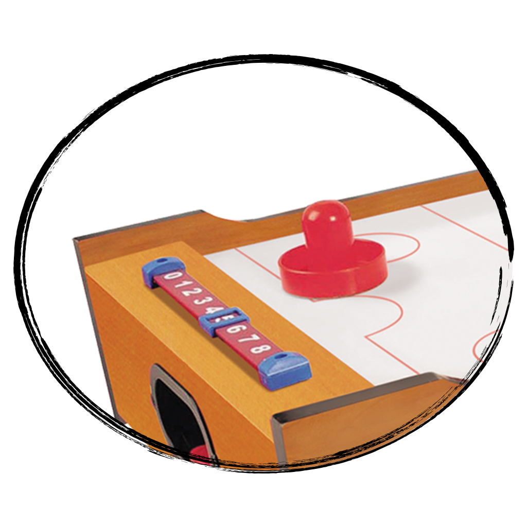 2 Spiele in einem. Einfach den Tisch umdrehen und schon wechselt das Spiel vom Kicker zum Gleithockey.