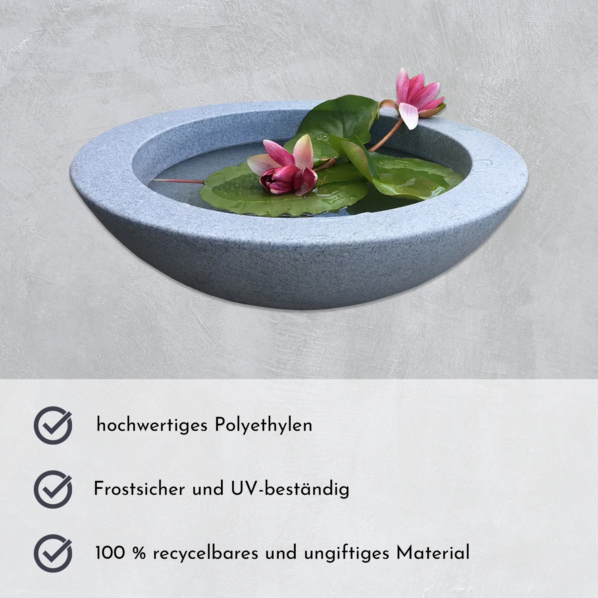 Pflanzschale aus Kunststoff, 60 cm, hellgrau, Blumenschale, Zierteich