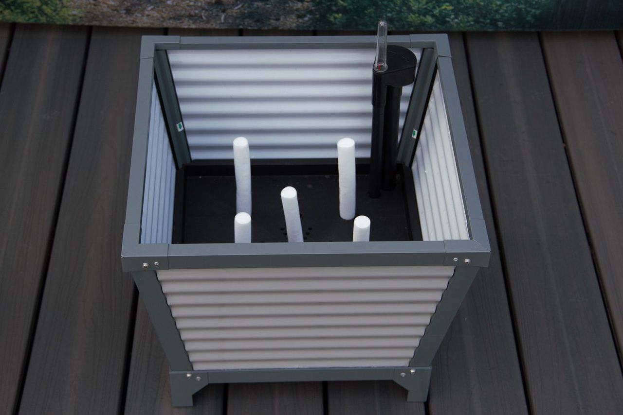 Der Pflanzkasten MODENA von Nativ ist aus hochwertigen Materialien gefertigt und mit einem durchdachten Bewässerungssystem ausgestattet. Bereits nach kurzer Anwachszeit können sich Ihre Pflanzen selbst versorgen. Zellstoffzylinder werden in den Bewässerungskasten gesteckt und sind so die ideale Verbindung zwischen Wasser und Wurzeln. Ein Wasserstandsanzeiger zeigt Ihnen genau an, wann es wieder Zeit ist zum Gießen. Ideale Wachstumsvoraussetzungen für Ihre Blumen, Kräuter, Ihr Gemüse, und andere Pflanzen.