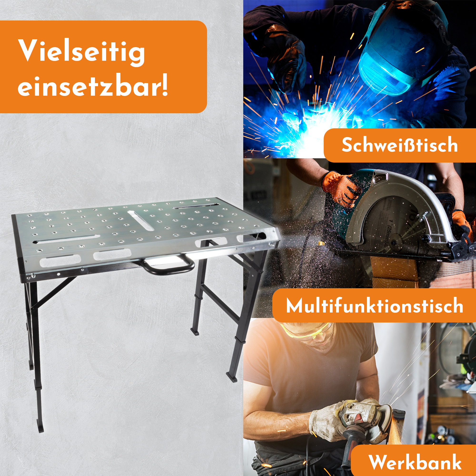 Schweißtisch klappbar, Werkbank höhenverstellbar aus Stahl, Multifunktionstisch bis 450kg belastbar