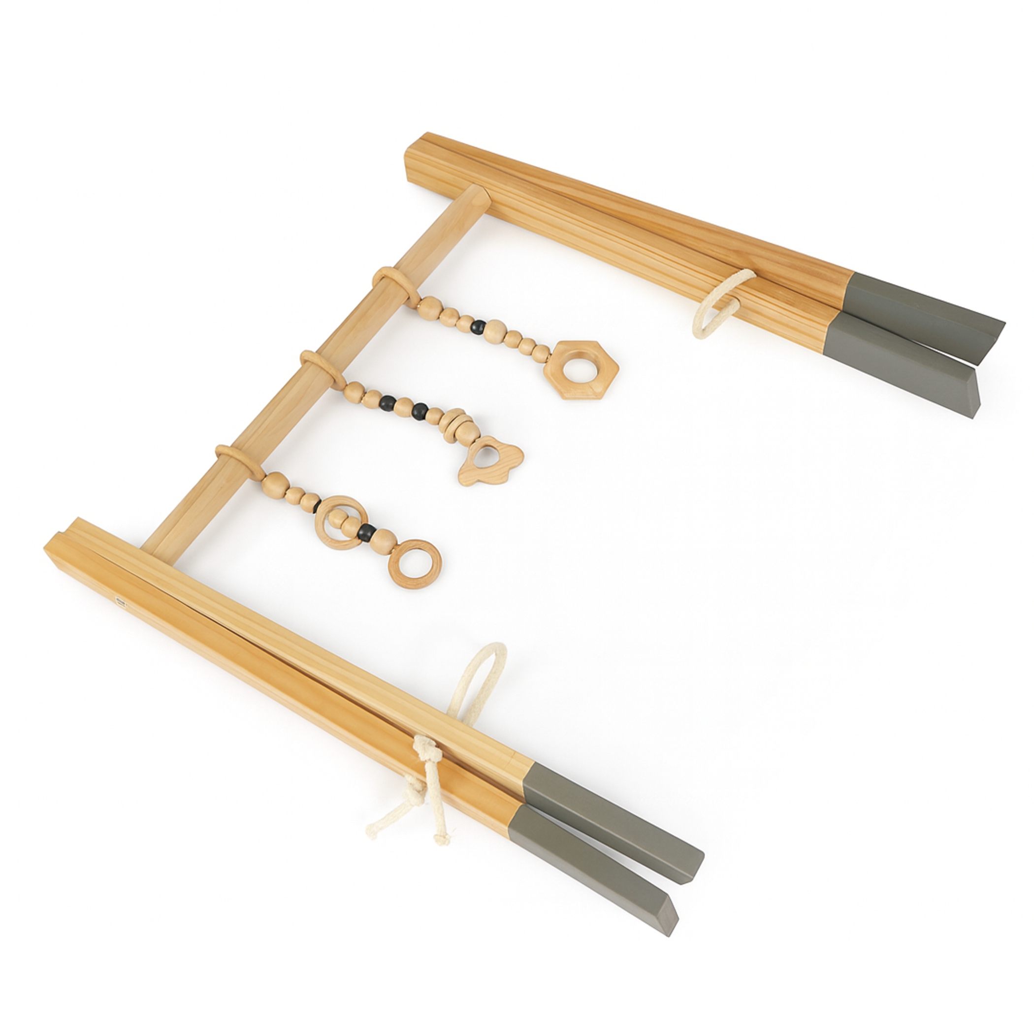 Spielbogen Baby aus Kiefernholz natur, klappbar mit Anhängern