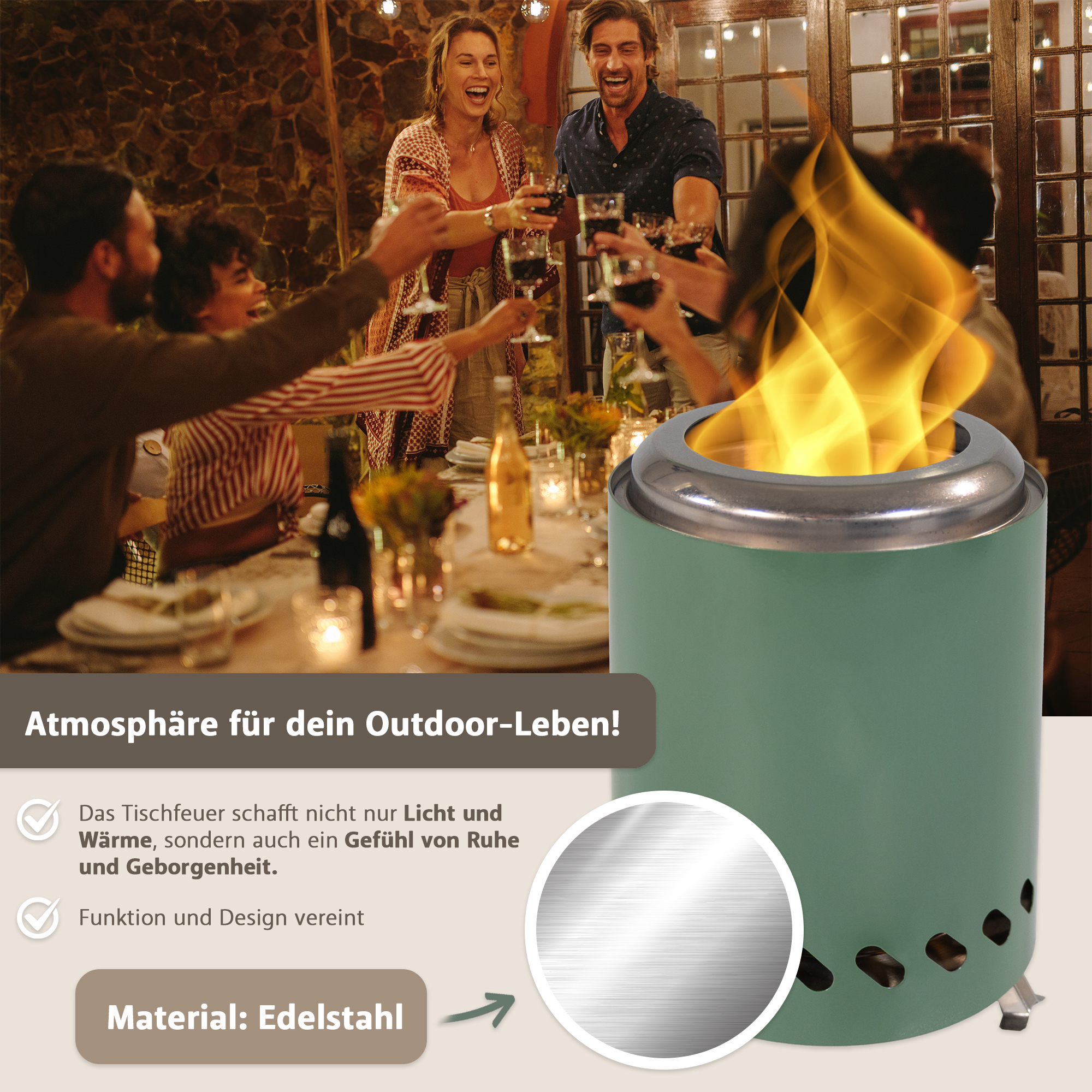 - dekoratives Tischfeuer für Garten und Terrasse