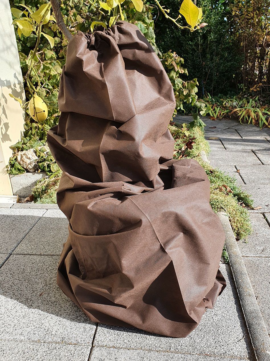 Kübelpflanzen sind im Winter empfindlicher als ausgepflanzte Gewächse und müssen deshalb vor Frost geschützt werden. Wichtig ist neben dem Schutz der Triebe auch ein Schutz der Wurzeln. Diese sollten gut eingepackt werden, jedoch zum Gießen zugänglich bleiben. Mit den anwenderfreundlichen Topfhüllen von Dittmann ist das Einpacken der Töpfe einfach und schnell möglich. Je eine Zugkordel am oberen und unteren Ende ermöglichen ein einfachen Anpassen an die Topfform.