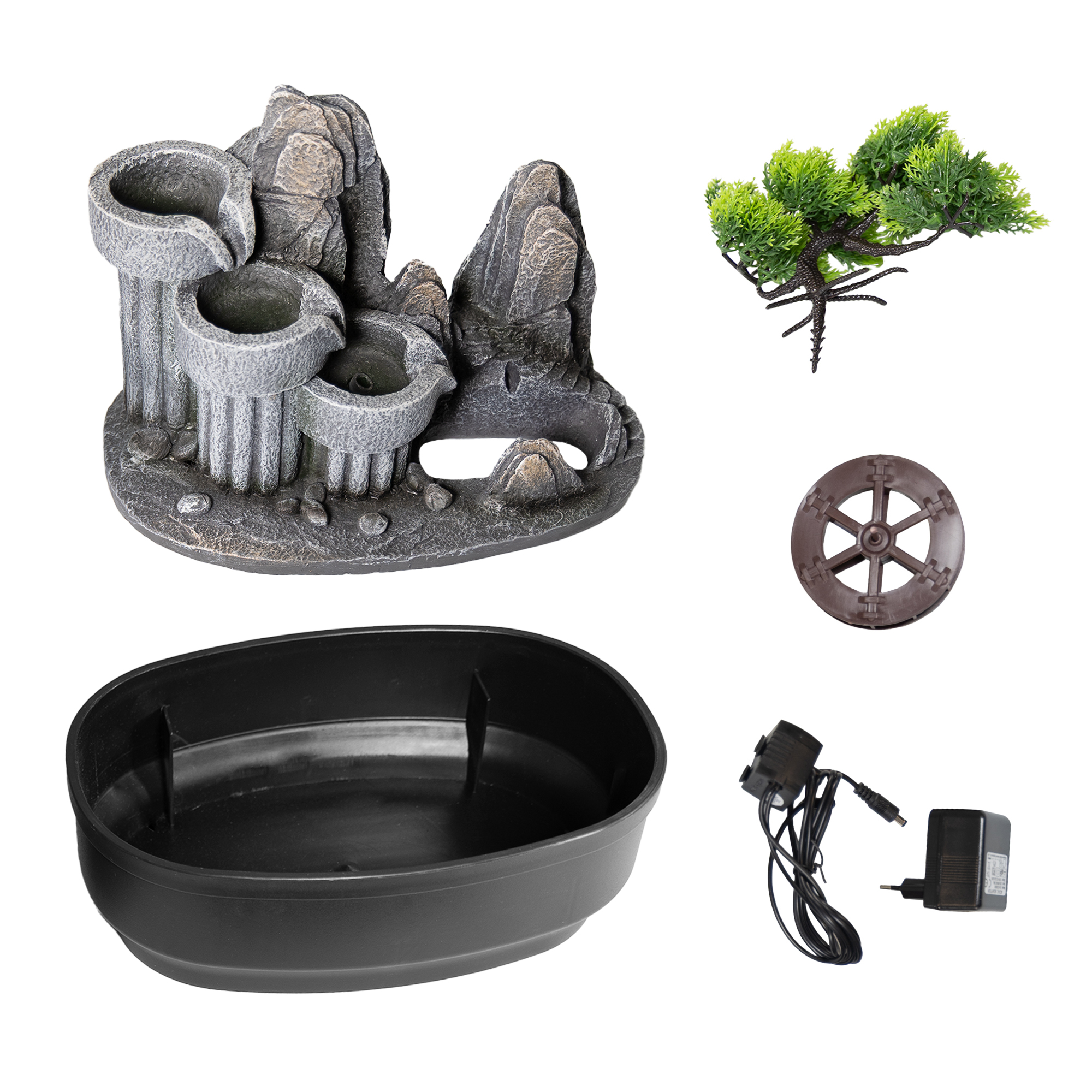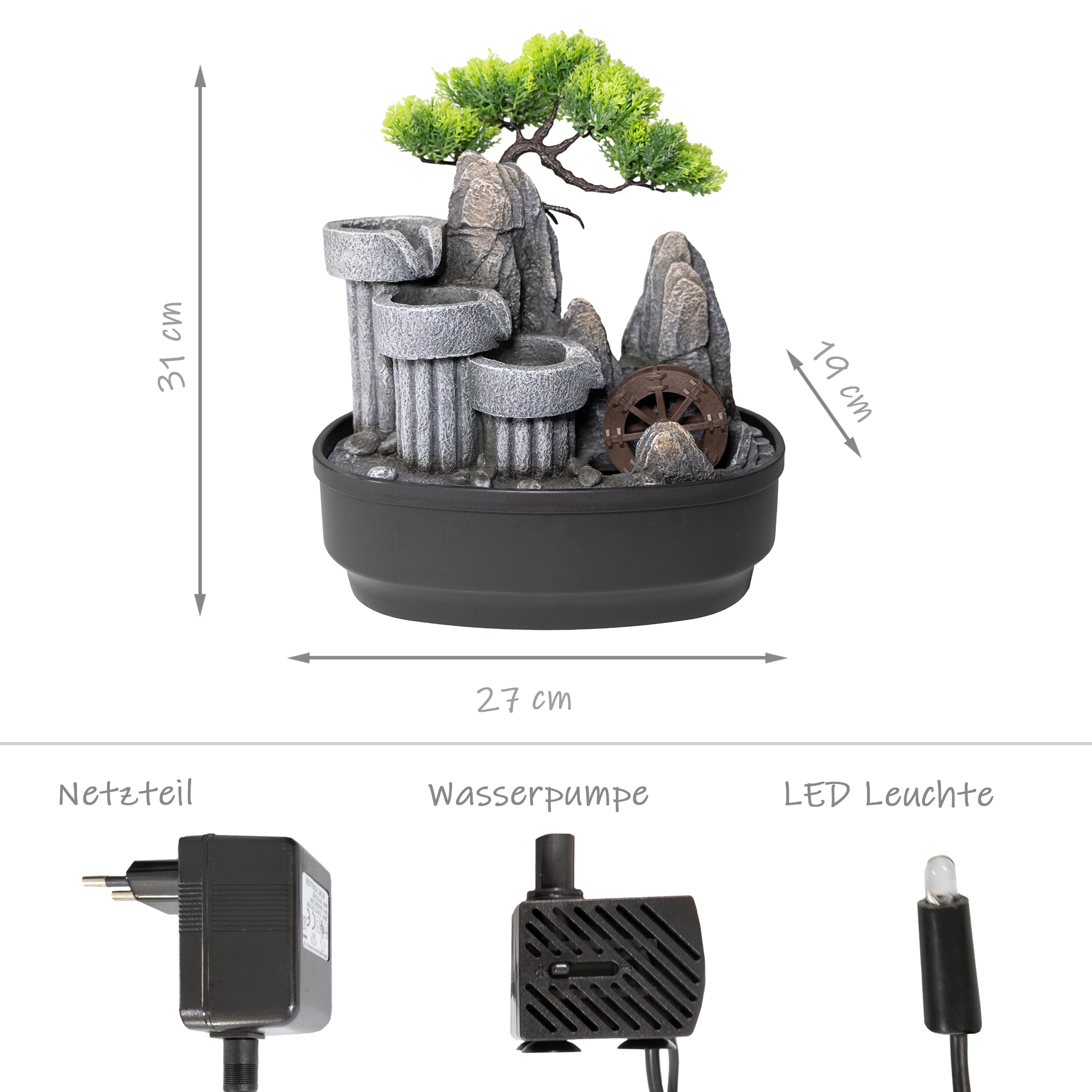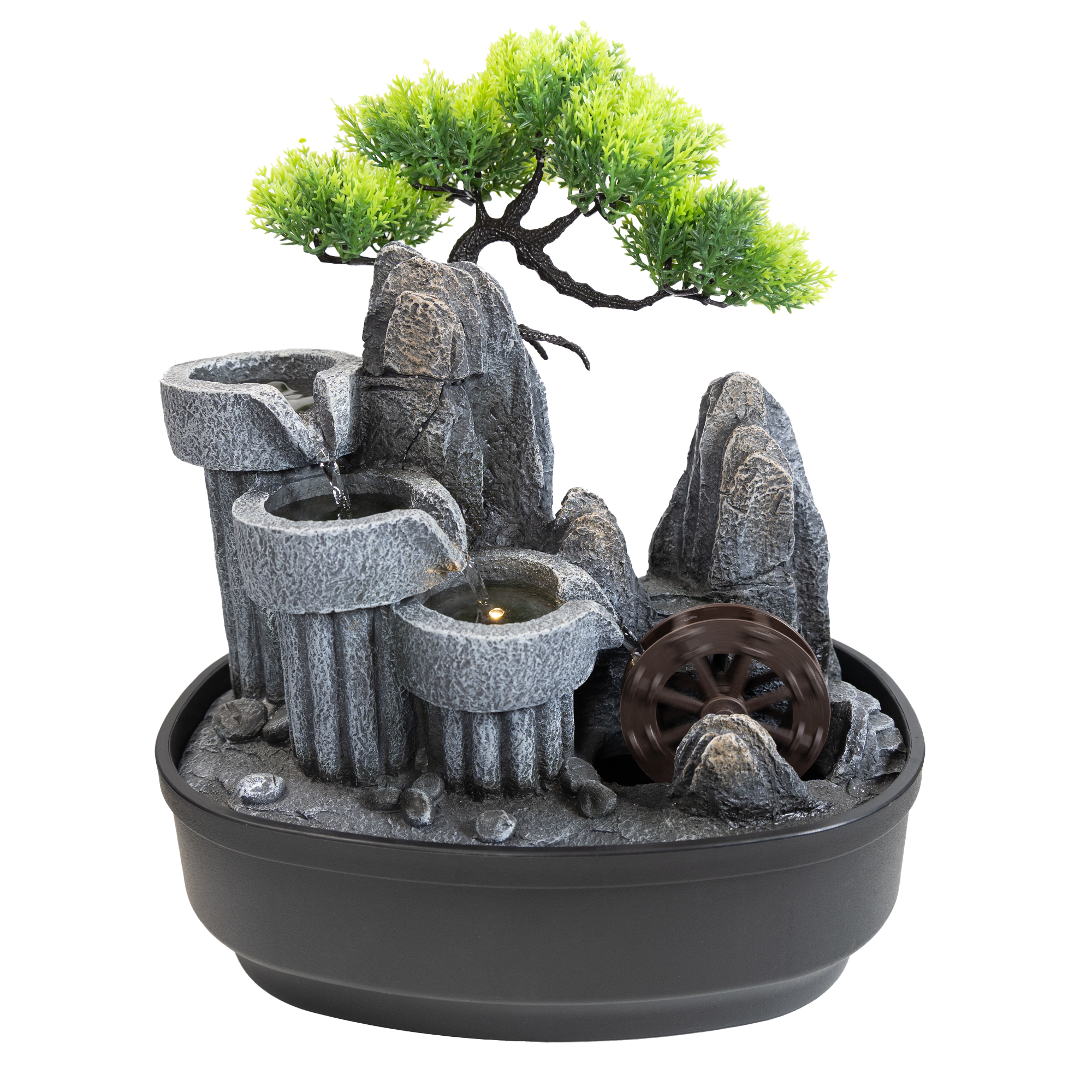 Produktinformationen "Zimmerbrunnen, Tischbrunnen mit Wasserrad und Dekobaum"