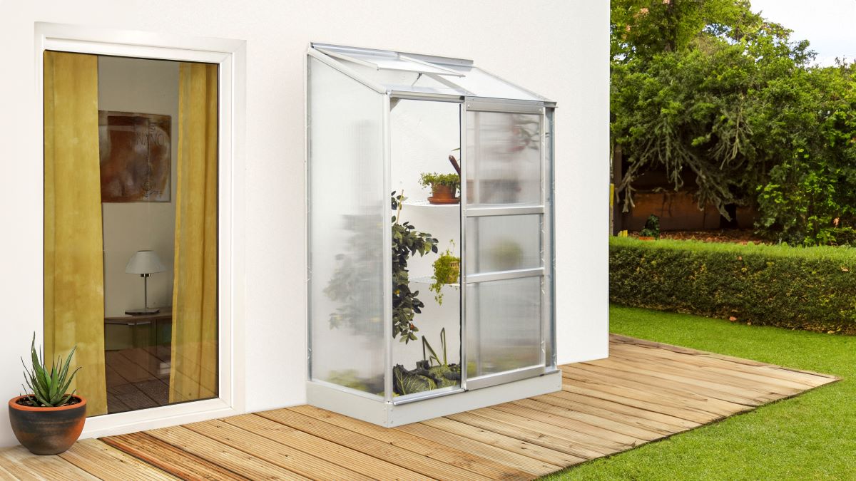 Produktinformationen "Anlehngewächshaus IDA 0,65x1,30 m, Alurahmen alu eloxiert, HKP 4mm"