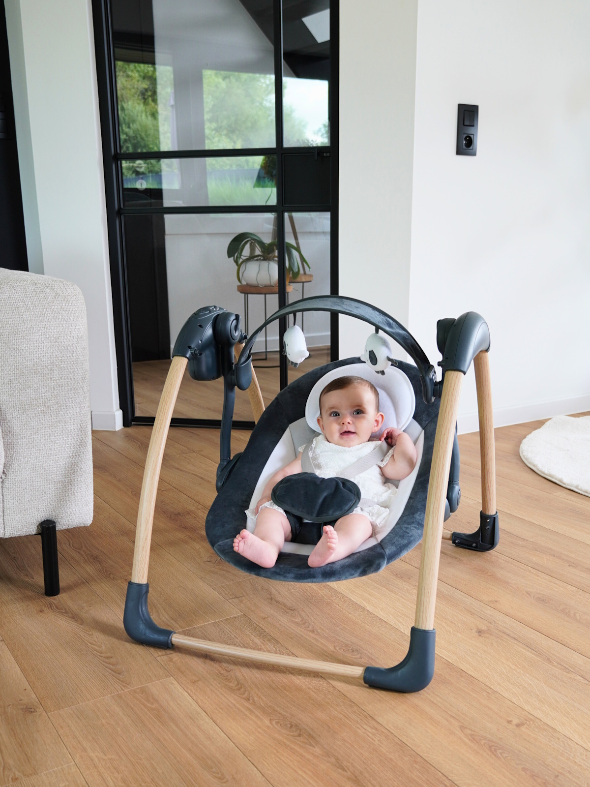 Die BoJungle Babywippe vereint modernes Design mit durchdachter Funktionalität – ideal für Eltern, die Wert auf Stil und Komfort legen. In elegantem Dunkelgrau fügt sich die Wippe harmonisch in jedes Wohnambiente ein, während sie gleichzeitig ein sicherer und gemütlicher Rückzugsort für Dein Baby ist. Ausgestattet mit einem abnehmbaren Spielbogen inklusiver zwei Figuren fördert die Wippe spielerisch die motorische Entwicklung Deines Kindes. Für zusätzliche Unterhaltung und Beruhigung sorgt die integrierte Musikfunktion mit 8 sanften Melodien sowie eine wohltuende Vibrationsfunktion, die Deinem Baby hilft, sich zu entspannen oder sanft einzuschlummern. Besonders praktisch: Die integrierte Timer-Funktion ermöglicht es Dir, die Musik- und Vibrationsdauer flexibel auf 15, 30 oder 60 Minuten einzustellen. Der integrierte 5-Punkt-Gurt sorgt für die optiamle Sicherheit für Dein Baby während dem Schaukelerlebnis. Dank der praktischen Klappfunktion lässt sich die Wippe nach dem Gebrauch schnell und platzsparend verstauen. Sie ist leicht zusammenzufalten und ebenso wieder aufzubauen - ideal für den Einsatz zu Hause oder unterwegs.