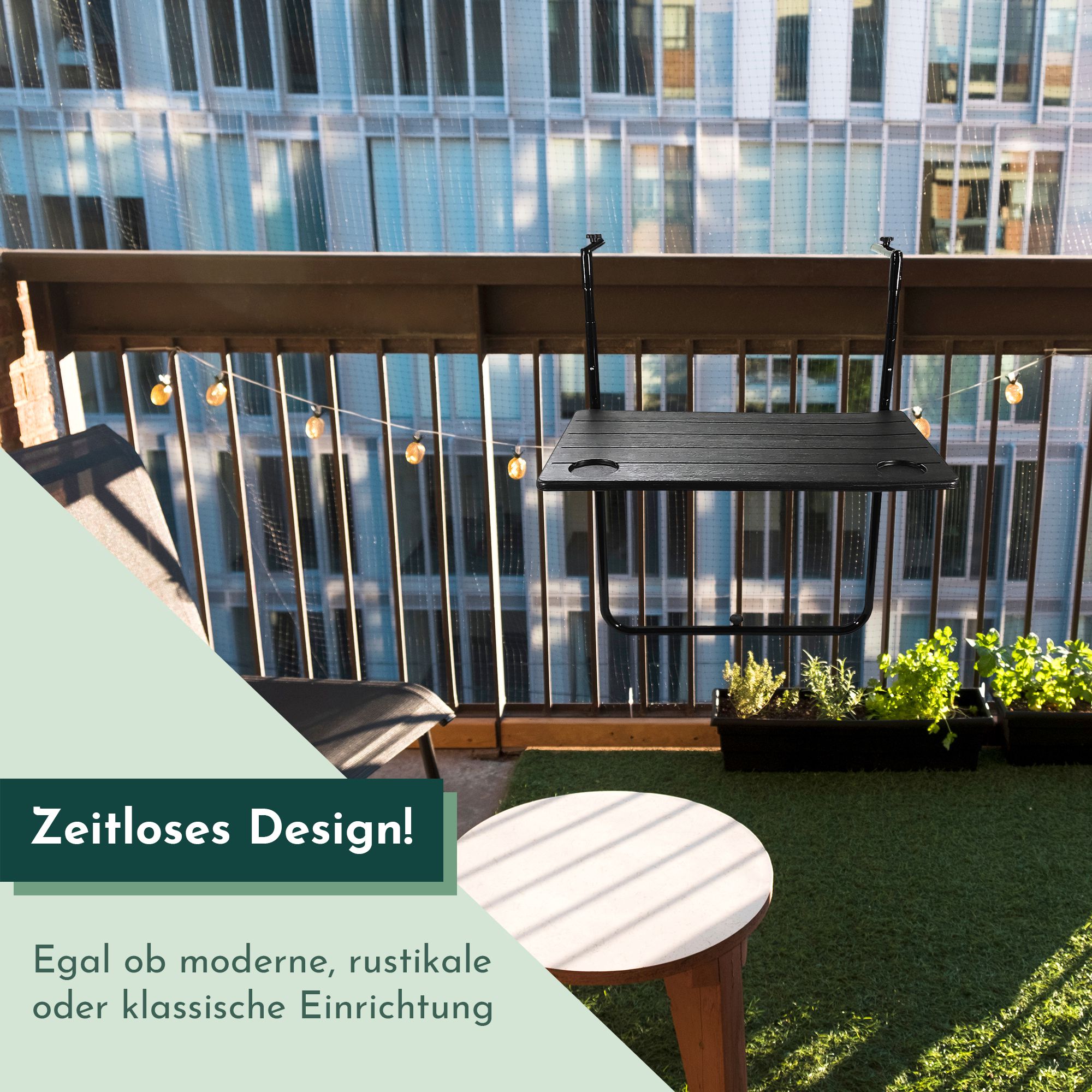 - PLATZSPAREND UND FUNKTIONAL: Wird der Balkonhängetisch nicht gebraucht, kannst Du ihn mit wenigen Handgriffen zusammenklappen und platzsparend aufbewahren. Dadurch ist der Balkontisch ideal für kleine oder schmale Balkone geeignet