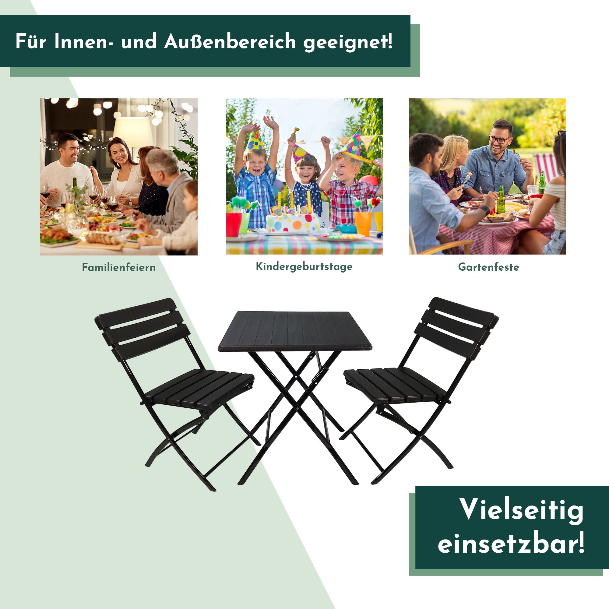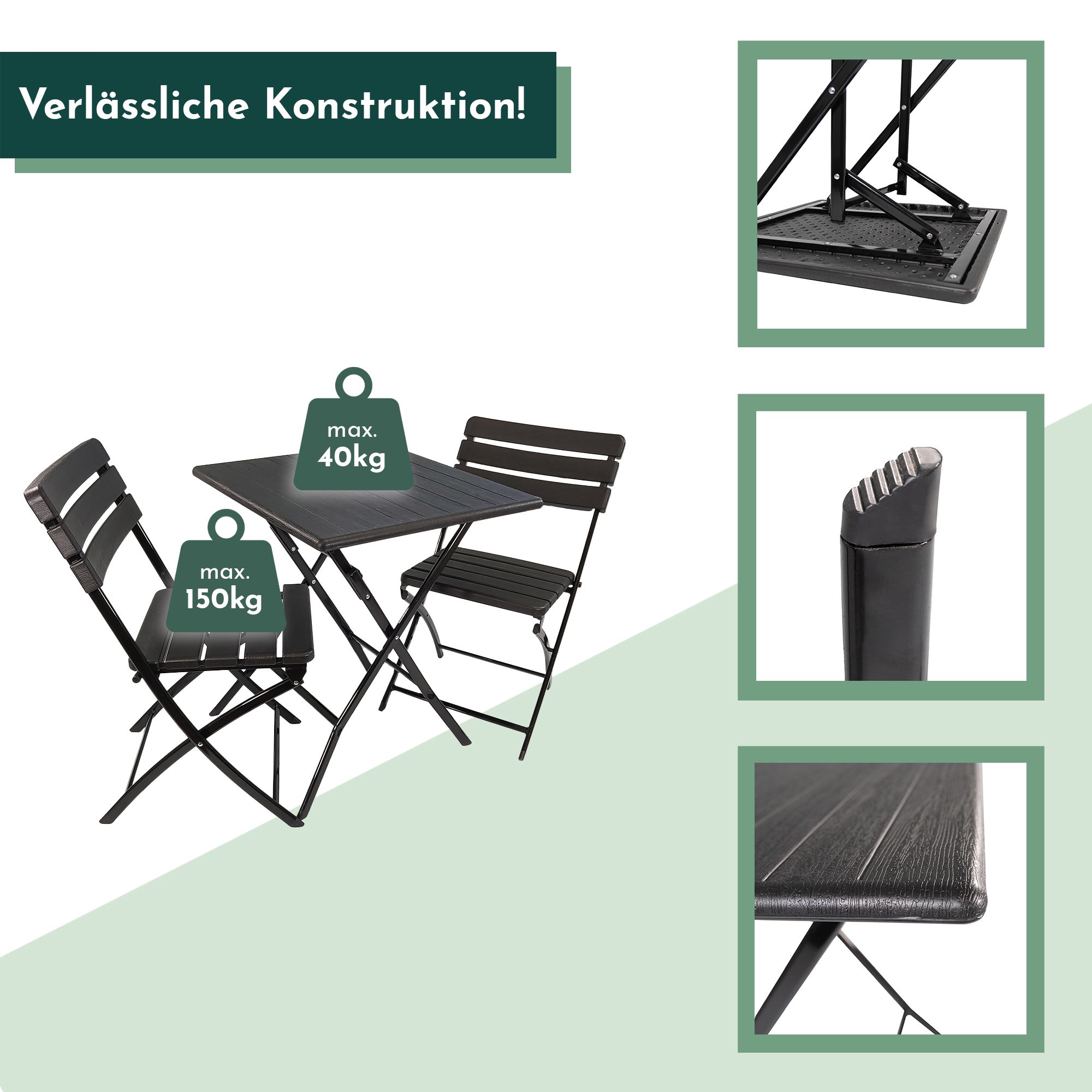 - KLAPPBAR UND TRANSPORTABEL: Das Klappdesign des Balkon Sets ermöglicht eine unkomplizierte Verstauung und mühelosen Transport. Genieße maximale Flexibilität mit unserem Balkonset – einfach überall dorthin mitnehmen und aufbauen, wo Du die Essgruppe benötigst