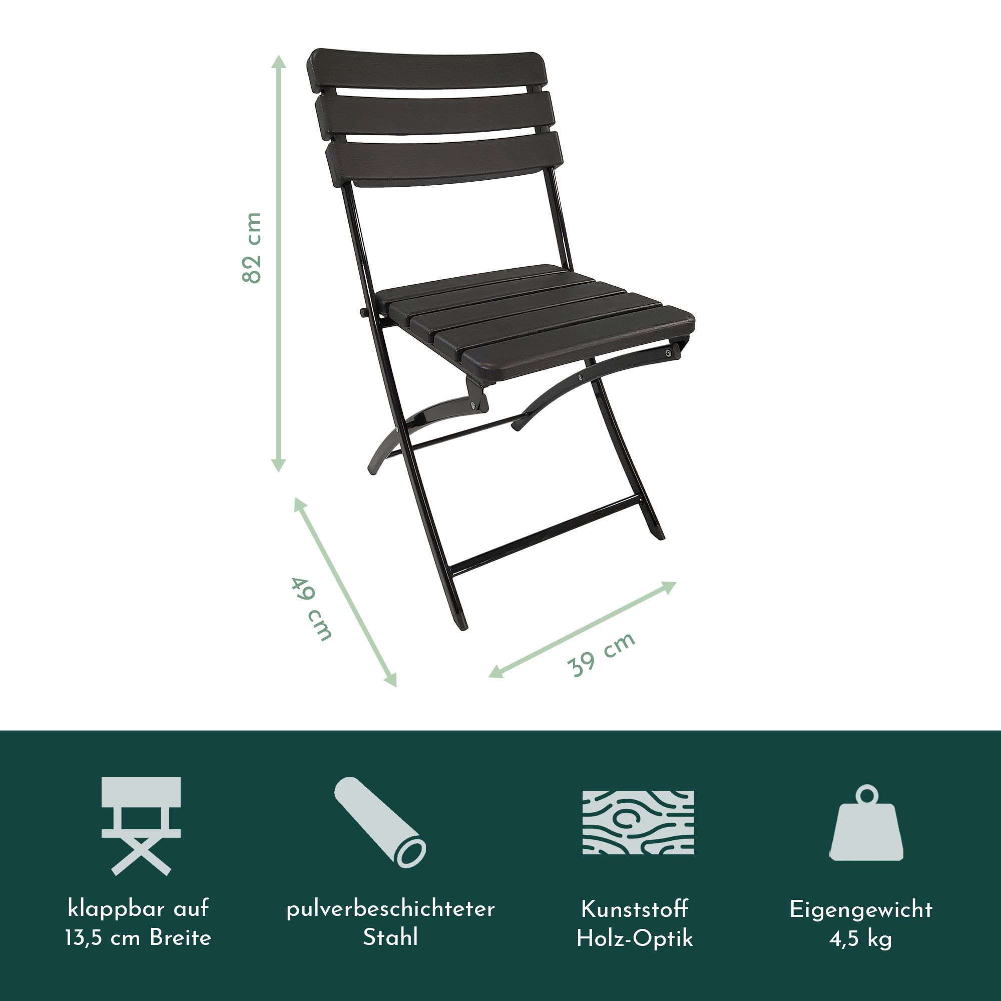 Unser Balkonmöbel Set wurde speziell konzipiert, um den begrenzten Platz auf Balkonen optimal zu nutzen. Die intelligente Platznutzung ermöglicht es, selbst auf kleinen Flächen eine komfortable und einladende Sitzecke zu schaffen. Dieses durchdachte Design wird durch die Klappfunktion des Balkonmöbel-Sets weiter verstärkt, was nicht nur eine unkomplizierte Verstauung, sondern auch einen mühelosen Transport ermöglicht. Mit dieser Flexibilität kannst Du das Balkonset problemlos dorthin bewegen und aufstellen, wo Du die Essgruppe gerade benötigst. Die Vielseitigkeit des Balkon Möbel Sets wird durch seine Anpassungsfähigkeit sowohl im gewerblichen als auch im privaten Bereich unterstrichen. Die Robustheit und Wetterbeständigkeit des Balkon Sets sind weitere entscheidende Merkmale. Hergestellt aus hochwertigem Stahl und robustem Kunststoff, verspricht das Gartenmöbel Set langanhaltende Freude. Diese langlebigen Eigenschaften machen es nicht nur für den privaten Gebrauch, sondern auch für den Einsatz in gastronomischen Betrieben ideal. Abgerundet wird das Angebot durch die pflegeleichten Eigenschaften des Bistrosets. Die Reinigung gestaltet sich äußerst simpel – ein feuchtes Tuch genügt normalerweise, um die Oberflächen mühelos zu säubern.