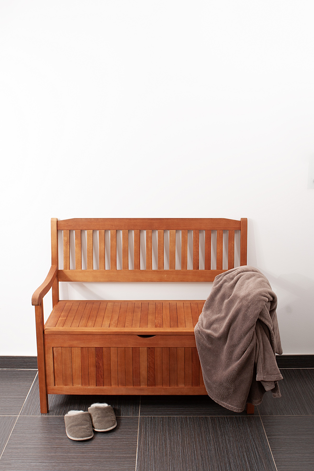 Die Gartenbank mit praktischem Staufach - Aus Gartenbank und Auflagenbox machen wir ein Produkt. Hier können Sie nicht nur Ihre Kissen und Auflagen verstauen, sondern natürlich auch noch bequem sitzen.