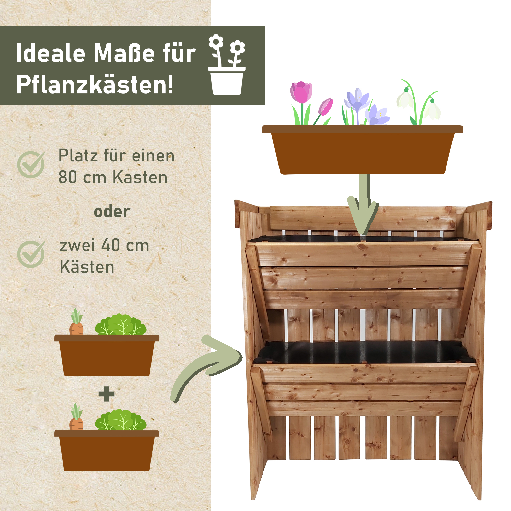 - VIELSEITIG EINSETZBAR: Unser Vertikalbeet kann für viele Pflanzen- und Blumenarten verwendet werden. Nutze es als Blumenständer, Pflanzturm oder kleines Frühbeet. Im Garten macht es auch als Kräuterbeet oder Blumenbank eine gute Figur