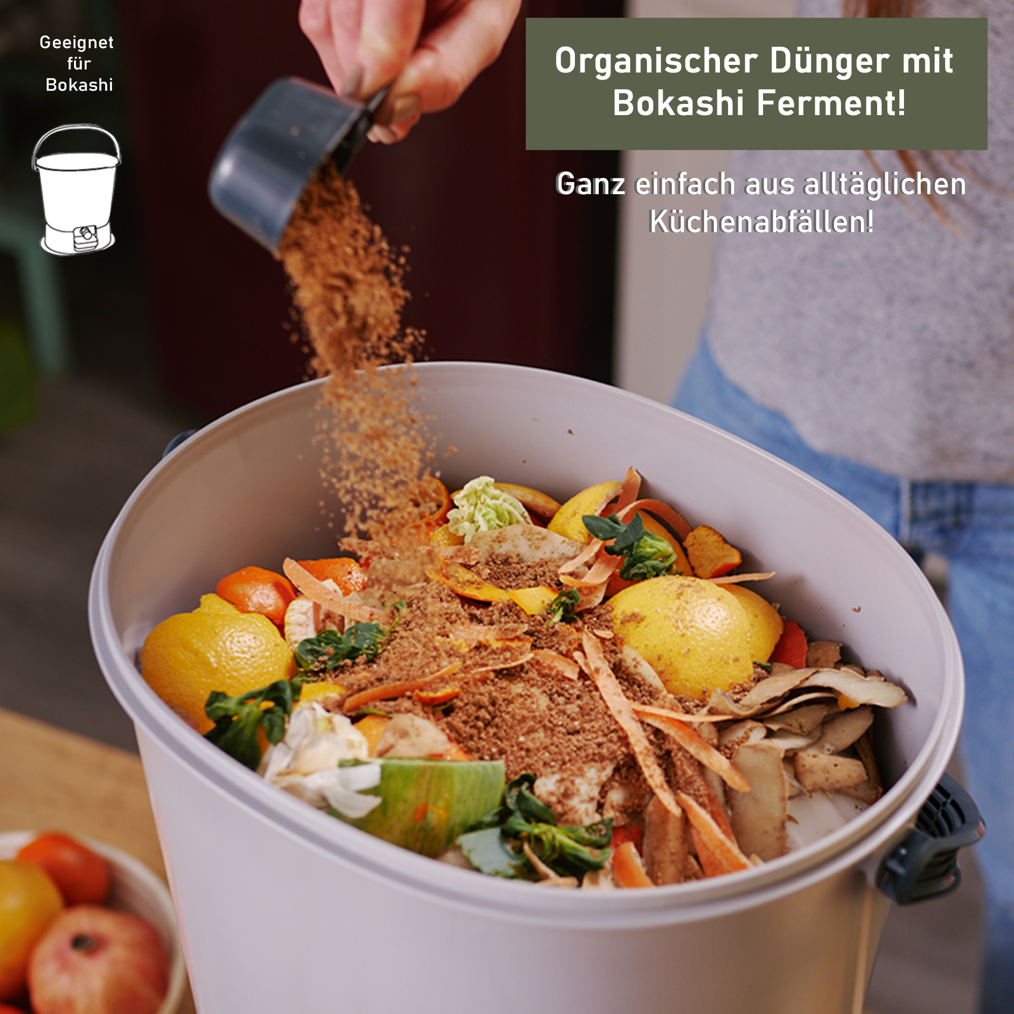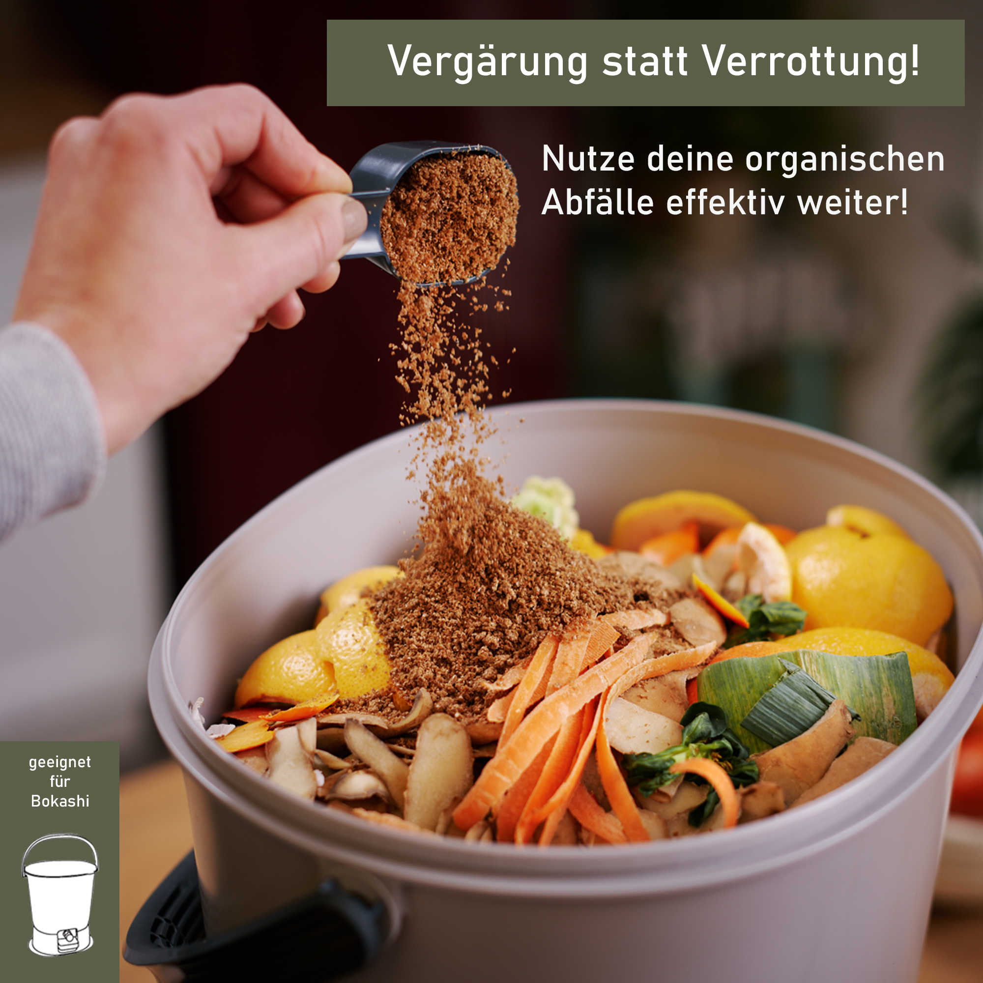 - VERMINDERT DIE GERUCHSBILDUNG: Unser Bokashi Ferment reduziert bei der Fermentation unangenehme Gerüche. Du kannst damit Deinen Bokashi Eimer in der Küche stehen lassen, ohne Sorge vor lästigen Fruchtfliegen