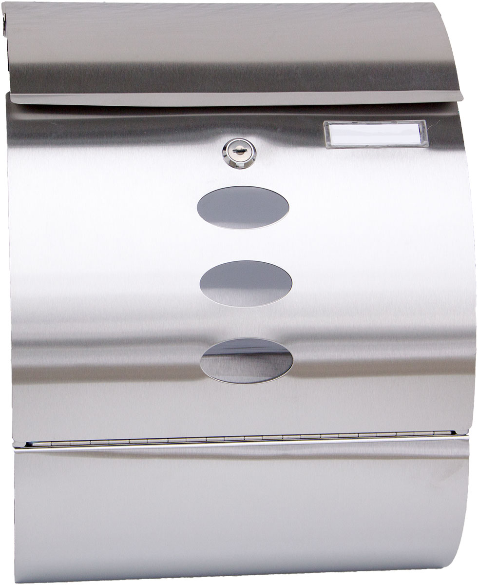 Der halbrunde Briefkasten mit Zeitungsrolle aus Edelstahl hat eine transparente Lackierung und verhindert dadurch Fingerabdrücke und Rückstände durch Regentropfen. Gefertigt ist er aus 0,6mm starkem Edelstahl mit 3 ovalen Sichtfenstern.